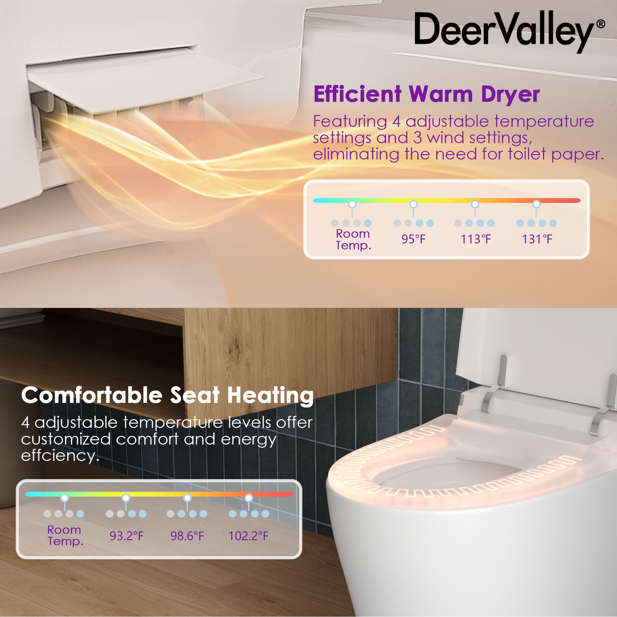 • Adjustable Temperature Heated Seat: The instant heated seat is featured with unique Low-Temp Anti Scalding Tech which can add warm care in winter. The closed-loop heating and temperature control system provides a 4-gear adjustable temperature range of 93.2 °F to 102.2 °F for fast drying.