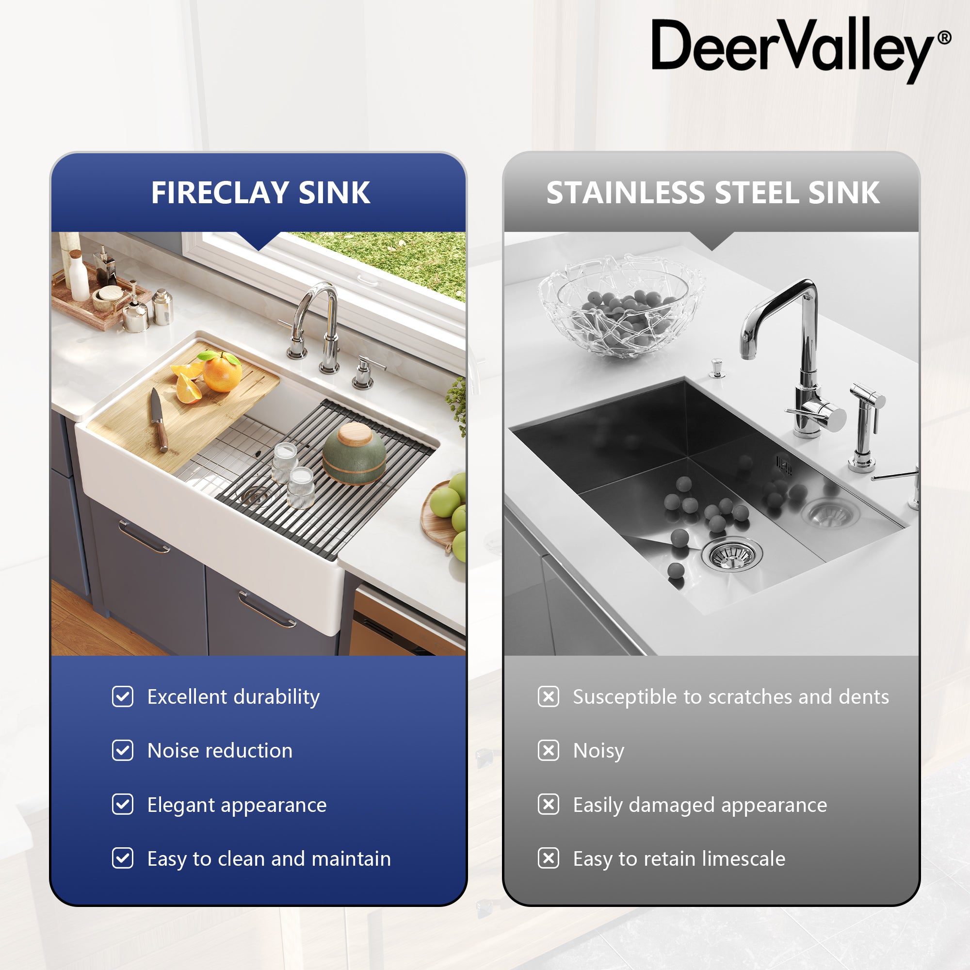 - Heavy-Duty Fireclay: Premium ultra-fine fireclay fired at 2300°F with glossy porcelain enamel — chip-resistant, crack-resistant, thermal-shock-proof, scratch & stain-resistant, non-porous, and super easy to clean.