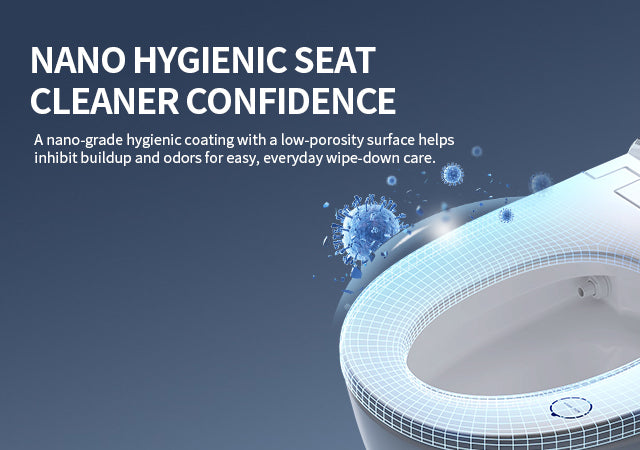 The nozzle is equipped with an automatic self-cleaning system that rinses itself before and after each use to ensure optimal hygiene. For additional cleaning, you can extend the nozzle using the remote control and gently wipe it with a soft cloth.