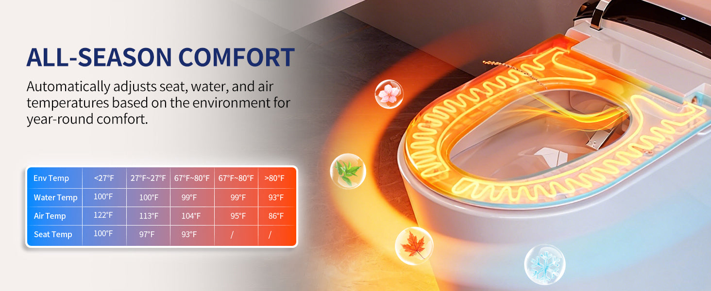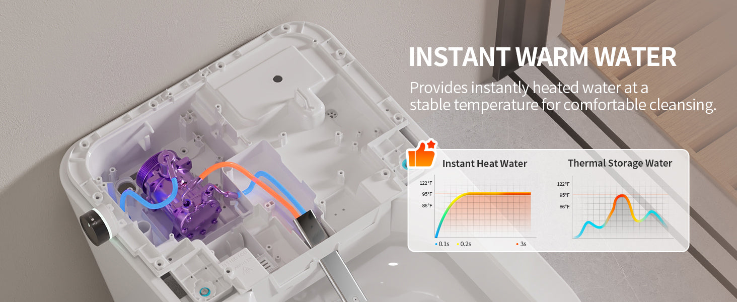 This smart toilet has a built-in heating system, so it heats the water by itself. You do not need to connect it to an external hot water source. The water can be adjusted to warm or cold according to your preference.