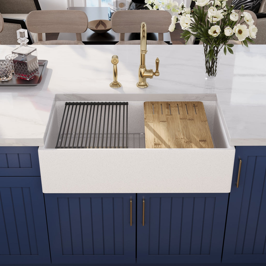 33" L x 18" W Rectangular Workstation Undermount Kitchen Sink, Natural Material With Multiple Colors