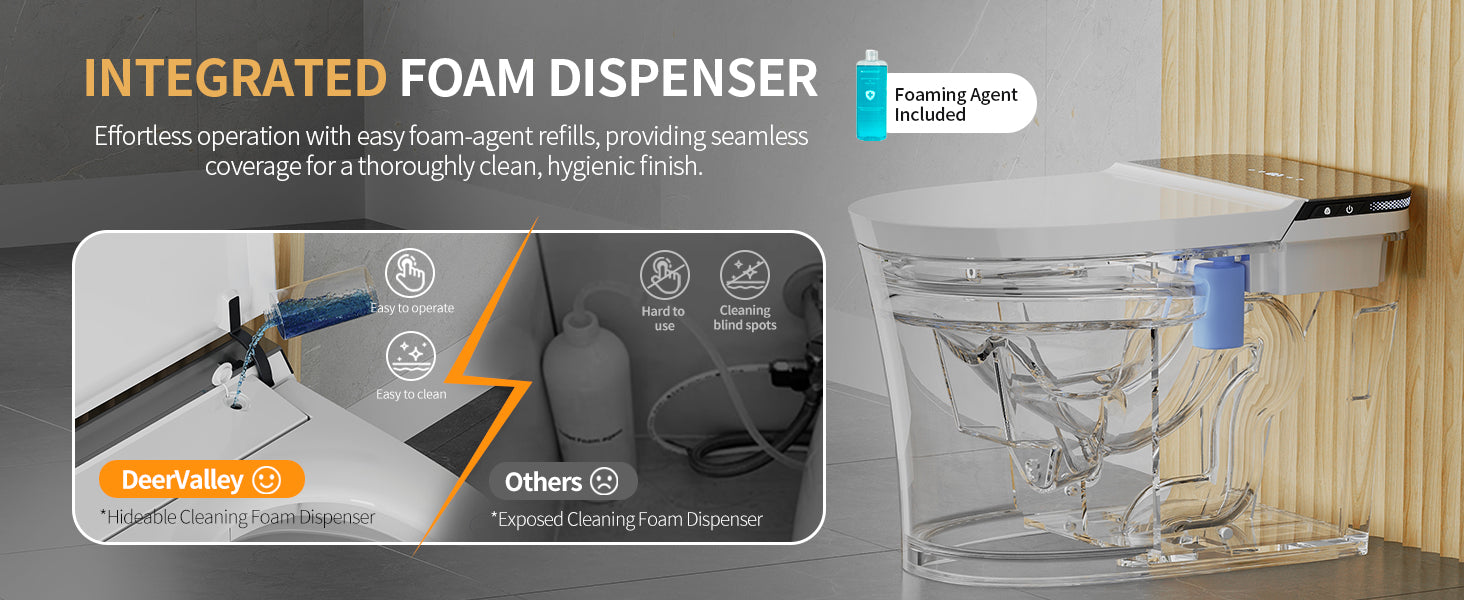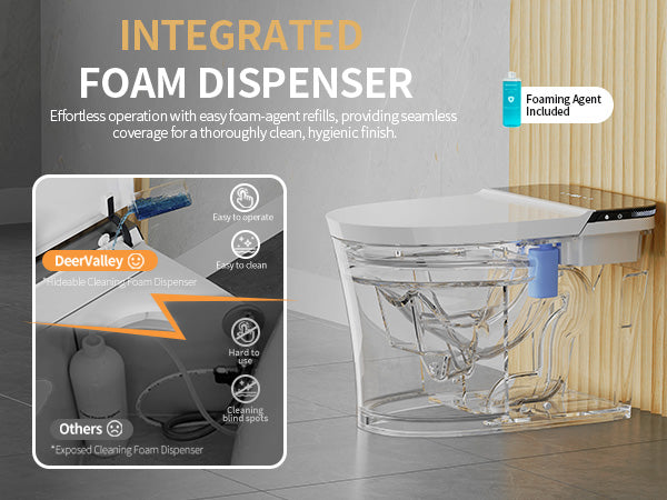 DeerValley DV-1S0290 Smart Toilet Bidet, One Piece Elongated Toilet with Foam Shield, Auto Flush 1.0/1.28 GPF, ADA Comfort Height, Heated Seat, Instant Warm Water, LED Display, Built-in Water Tank & Pump