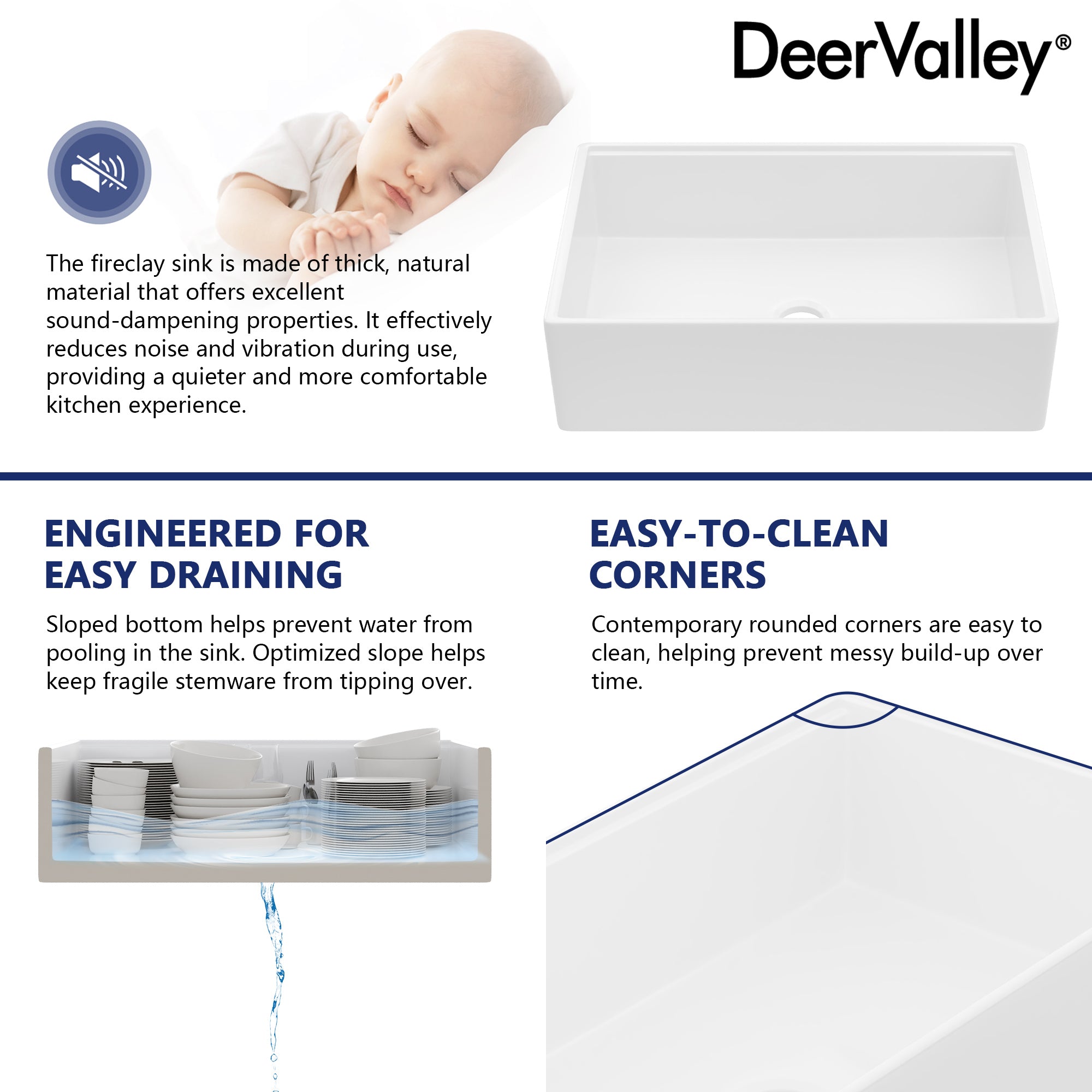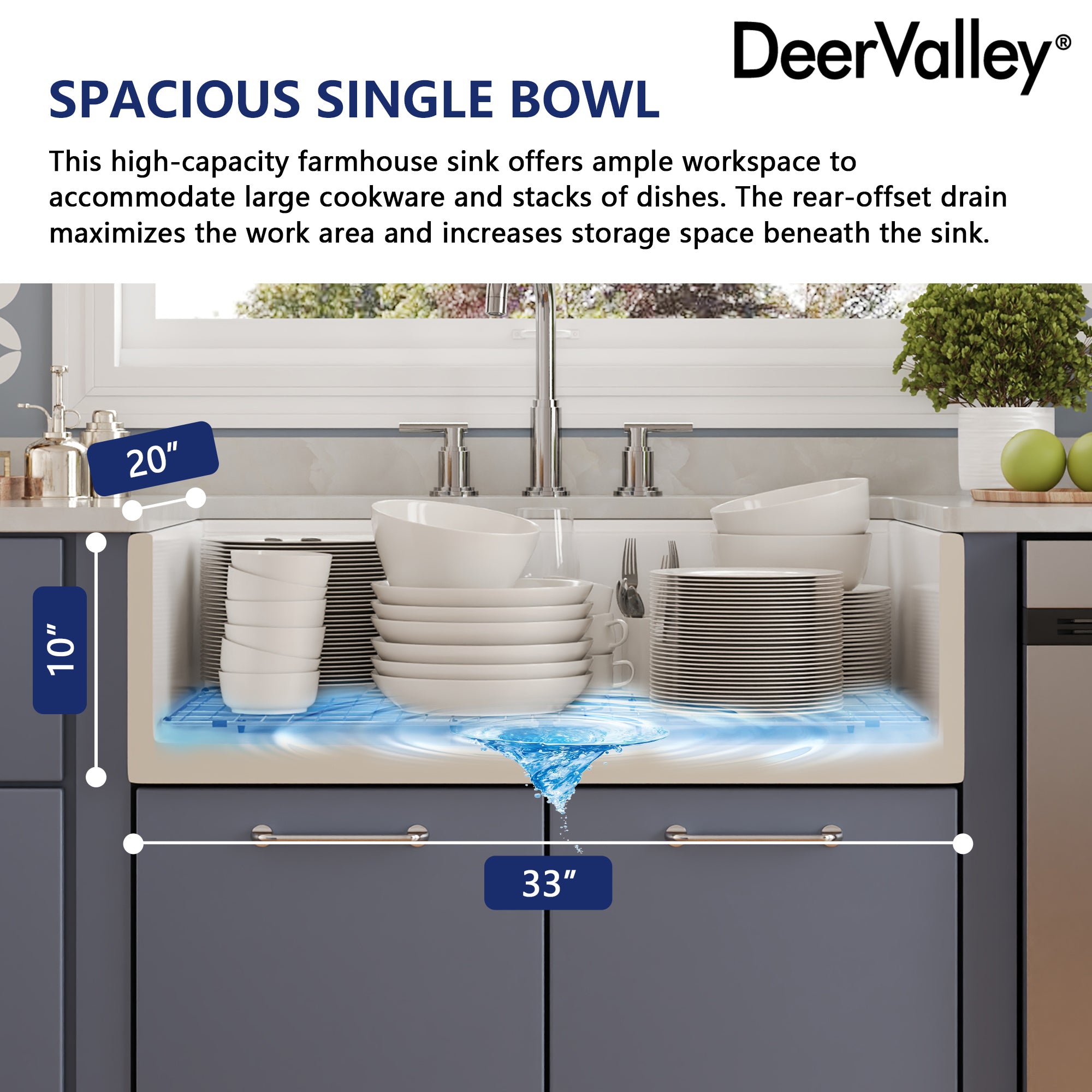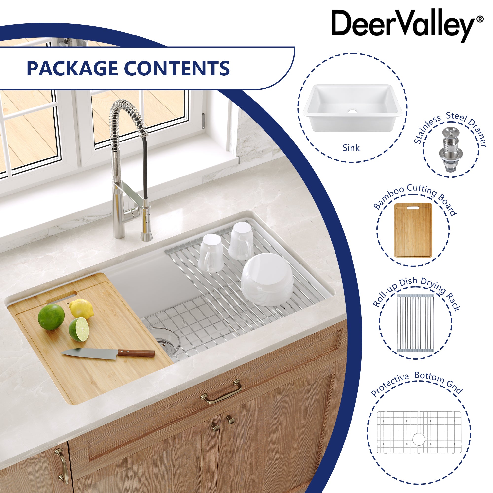 DeerValley DV-1K0161W Workstation Farmhouse Kitchen Sink Deep Single Bowl with Accessories