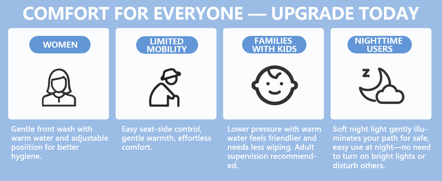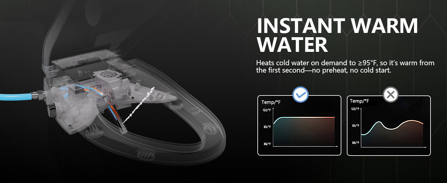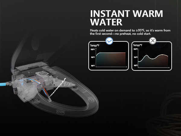 This smart toilet has a built-in heating system, so it heats the water by itself. You do not need to connect it to an external hot water source. The water can be adjusted to warm or cold according to your preference.