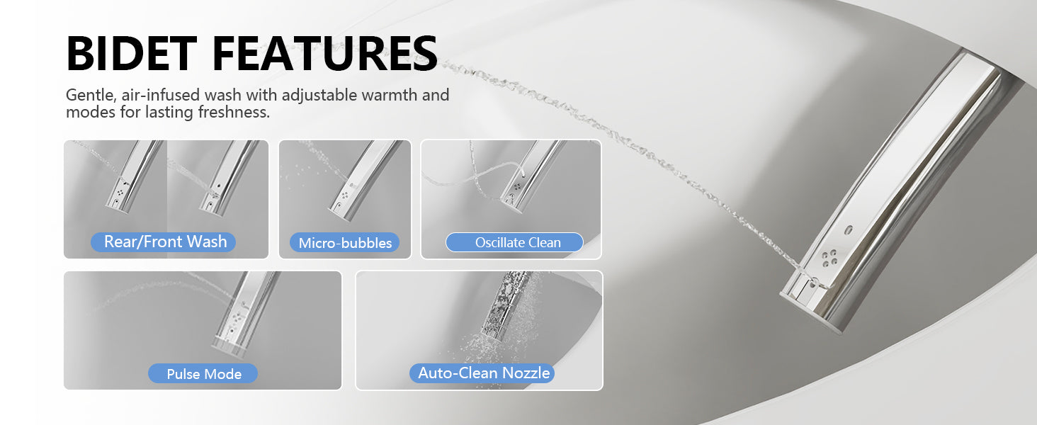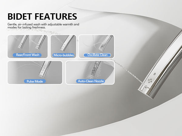 The nozzle is equipped with an automatic self-cleaning system that rinses itself before and after each use to ensure optimal hygiene. For additional cleaning, you can extend the nozzle using the remote control and gently wipe it with a soft cloth.
