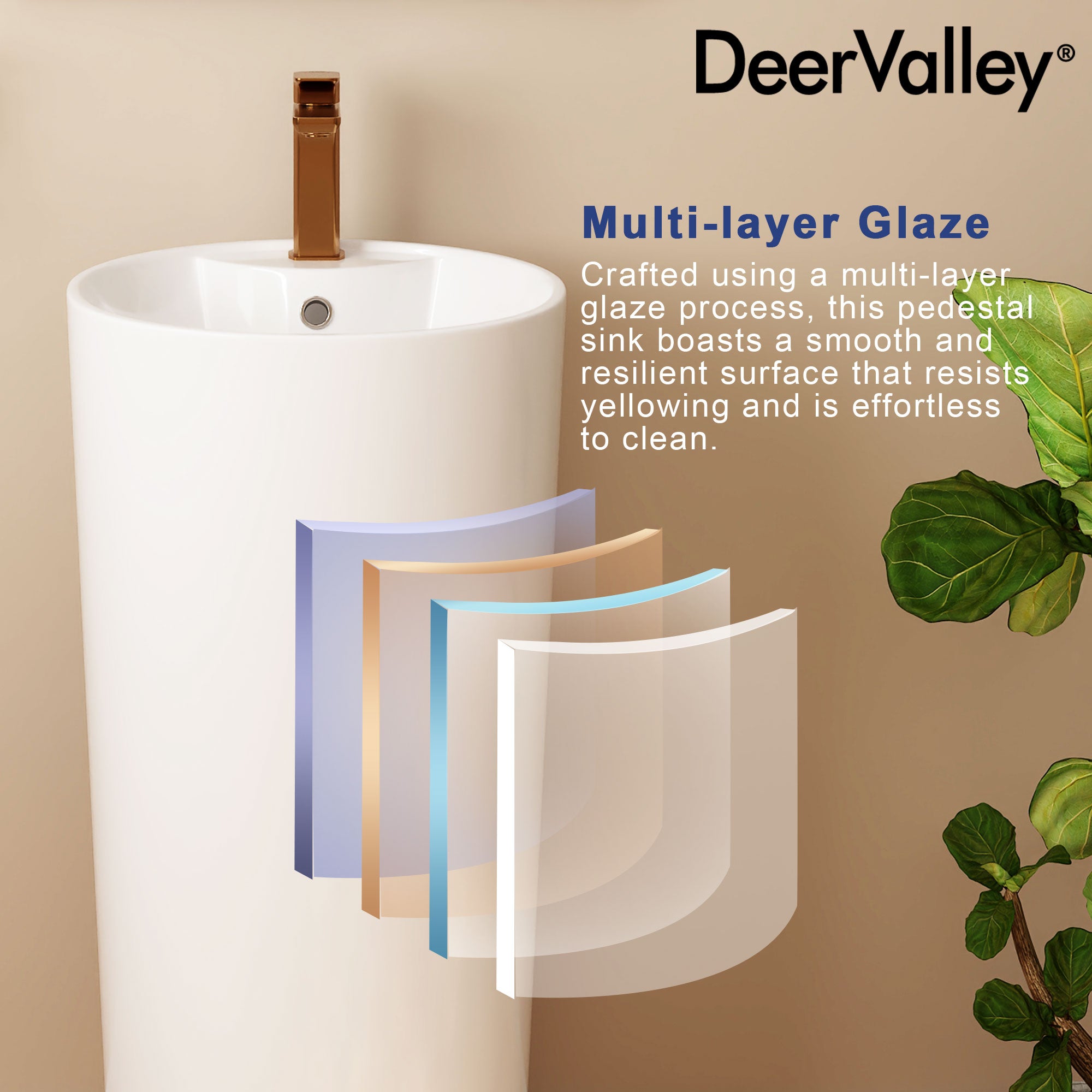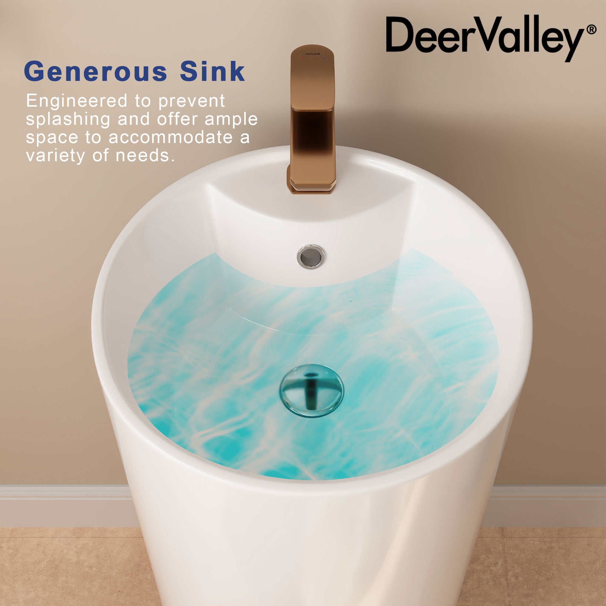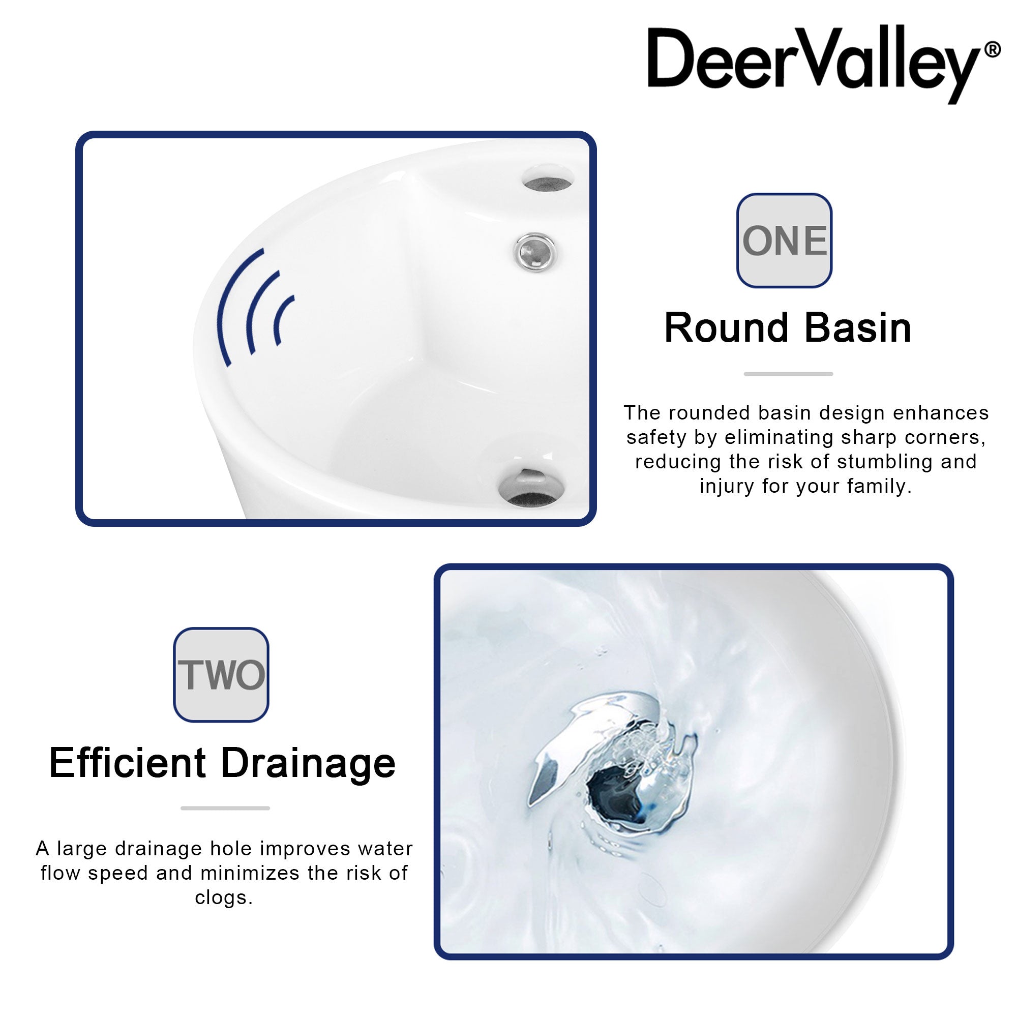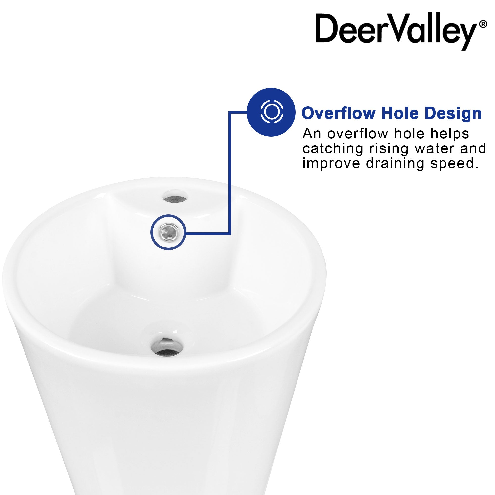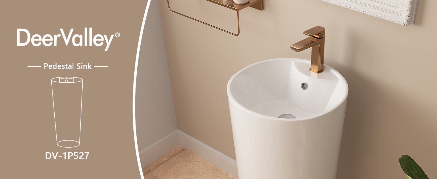 DeerValley DV-1P527 Pedestal Sinks, Minimalist Space-Saving Slim Design, Overflow & Single-Hole Faucet Ready