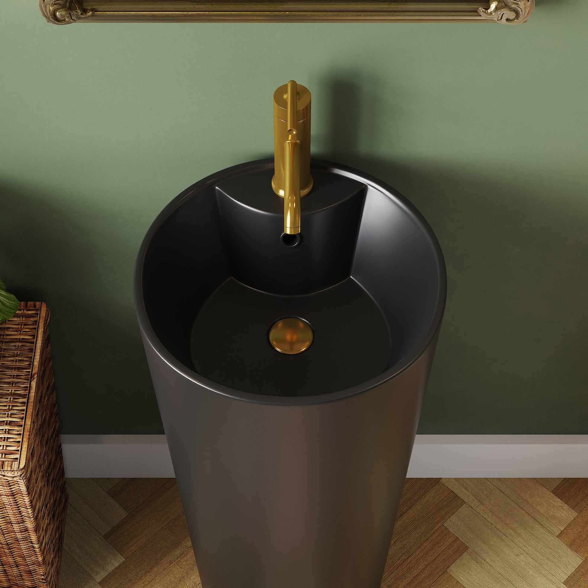- Space Efficient: Our freestanding pedestal sink is designed as a one-piece unit with a slim profile, allowing it to maximize floor space in your bathroom. Its compact size and pedestal base help save valuable square footage, making it an ideal choice for bathrooms with limited space.?