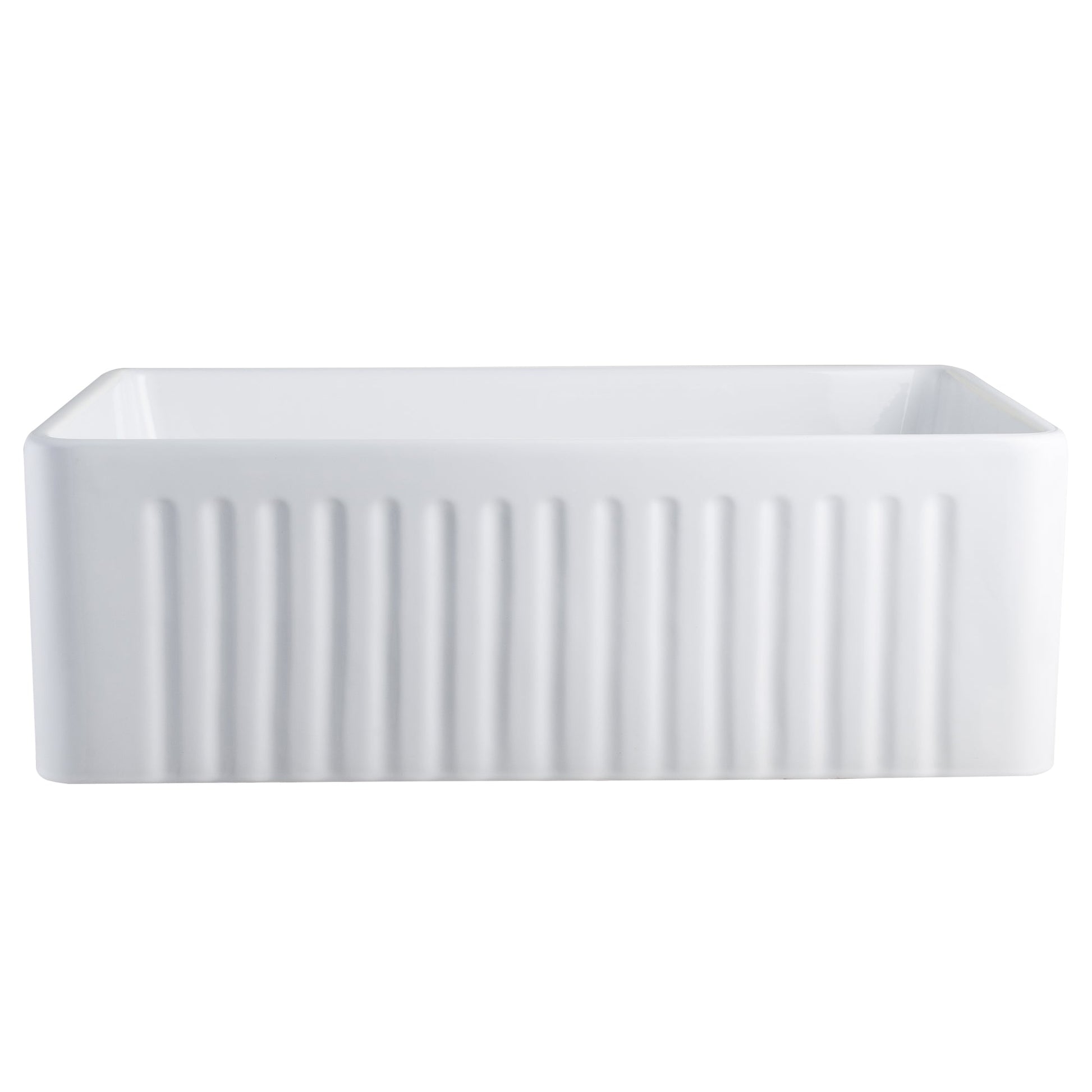 Enduring in beauty and performance, this kitchen sink is a fashionable kitchen fixture with modern farmhouse charm. A large single basin accommodates large pots and pans, while the sloped bottom helps with draining and cleanup. These sinks are also finished with an easy-to-clean coat, which makes this sink simple to maintain and keeps their natural beauty shining for years to come. One side has a smooth flat finish, and the other side has a decorative fluted design. Based on your design preference you can choose to install the sink either way.
