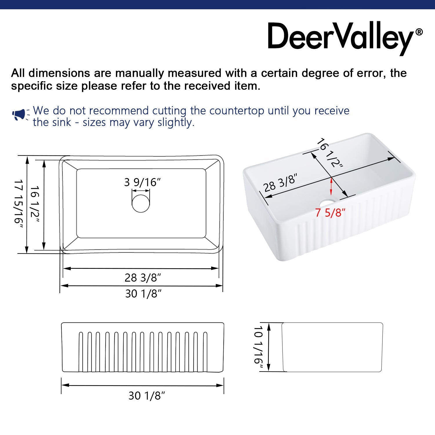 HARVEST 30" L x 18" W Rectangular Farmhouse Kitchen Sink, Apron Front