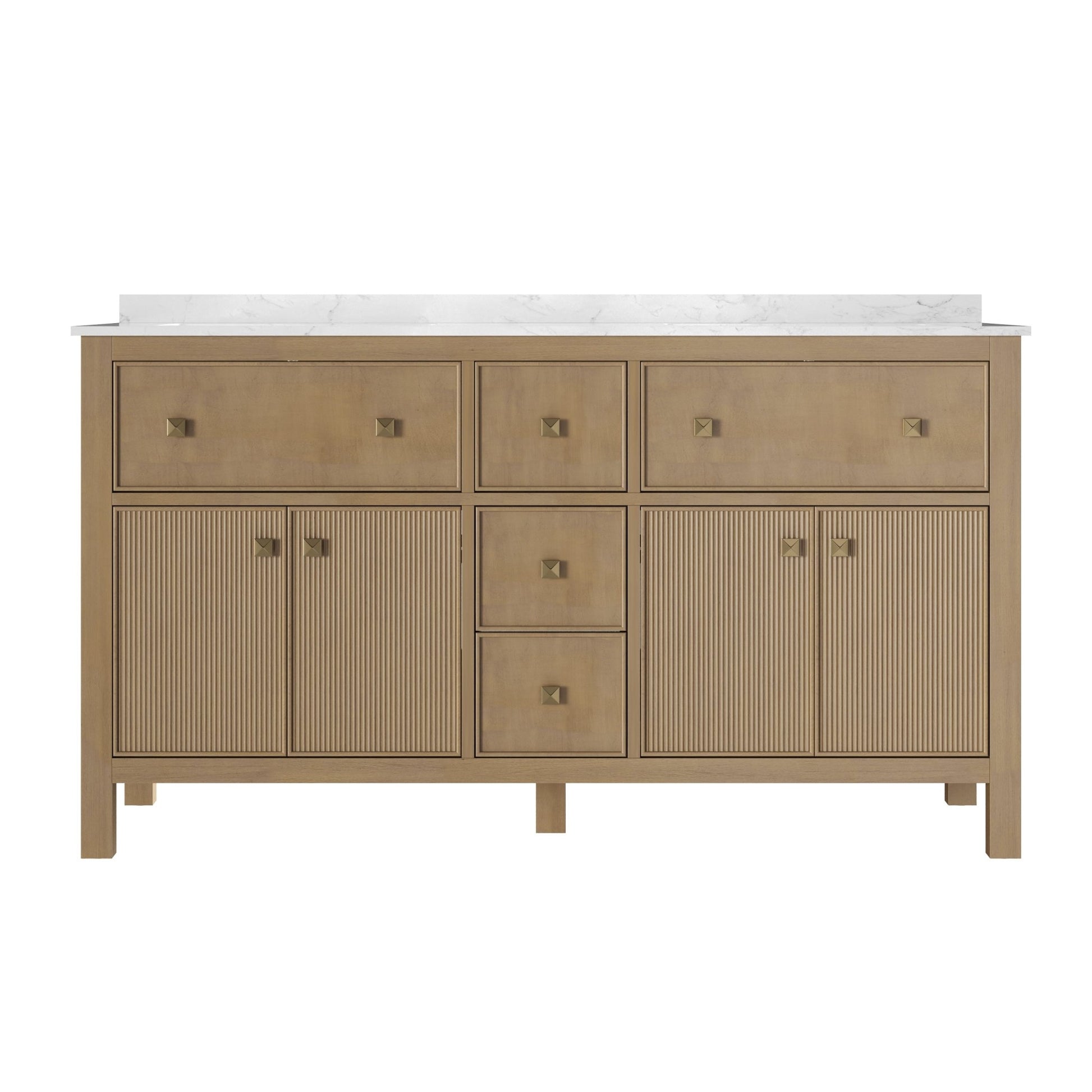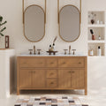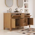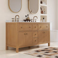 60" Pre-assembled Bathroom Vanity, with Soft Closing and Splash Guard, Natural Wood Color
