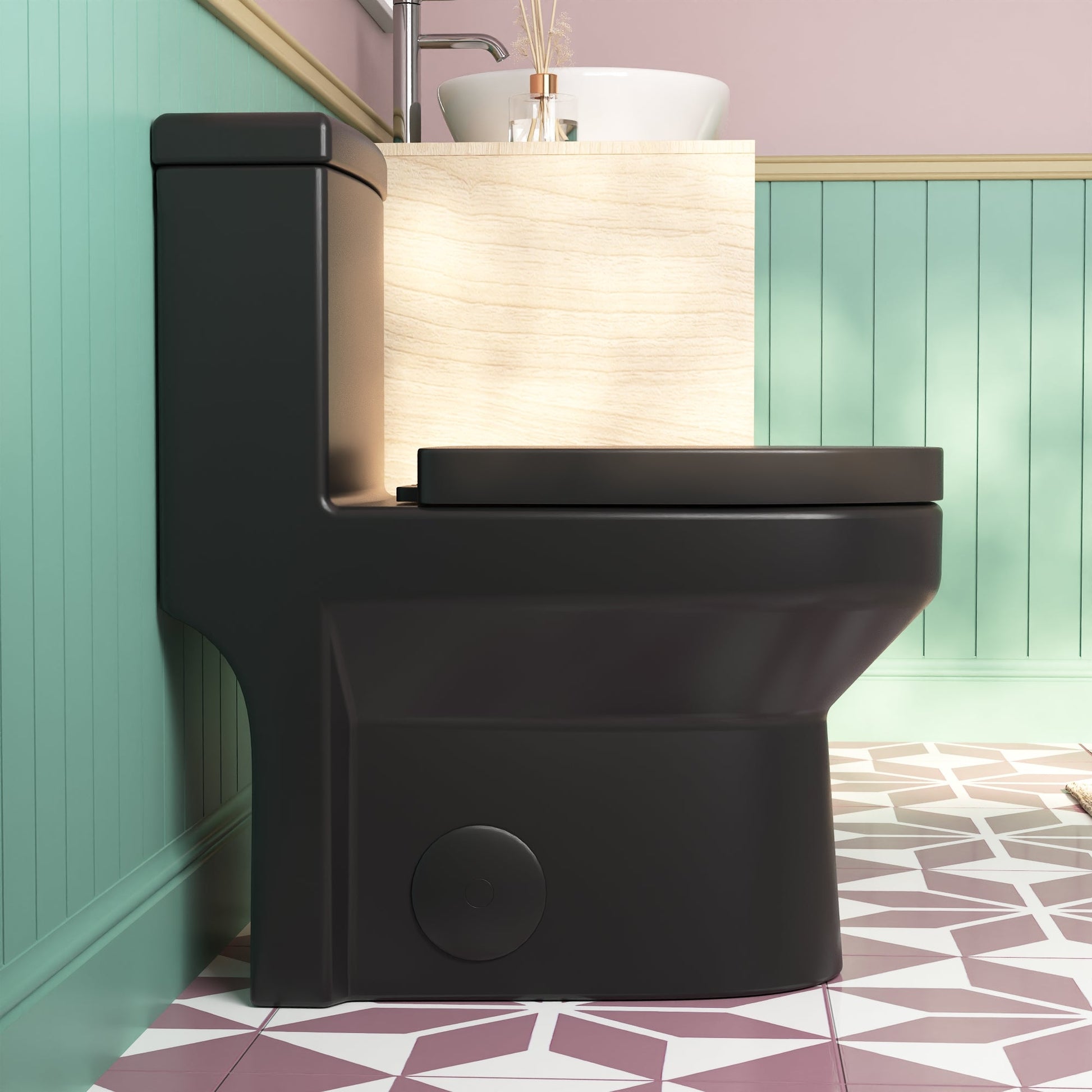 Small toilets save more space, a modern and compact design. This small toilet is designed for very small spaces, but the compact toilet looks perfect in every modern bathroom. This one-piece skirted toilet not only hides the curved sewage pipe but also enhances the elegant appearance of the toilet; by eliminating the gap between the tank and bowl, it eliminates the hiding places for dirt and debris, making it easy to clean. The seat cover of this dual-flush round one-piece universal height skirt toilet closes quietly without making any noise. The dual-flush toilet flushes a powerful 1.1/1.6 GPF, which is very reliable and also saves water. This version of the toilet comes with a very smooth glaze that prevents particles from sticking to the ceramic. This feature, combined with the high efficiency flush, helps reduce the frequency of toilet cleaning, minimizing the use of water, harsh chemicals, and the time required for cleaning. DeerValley has two size options for this modern toilet, we have a 12" rough-in toilet and a 10" rough-in toilet for you to choose from.