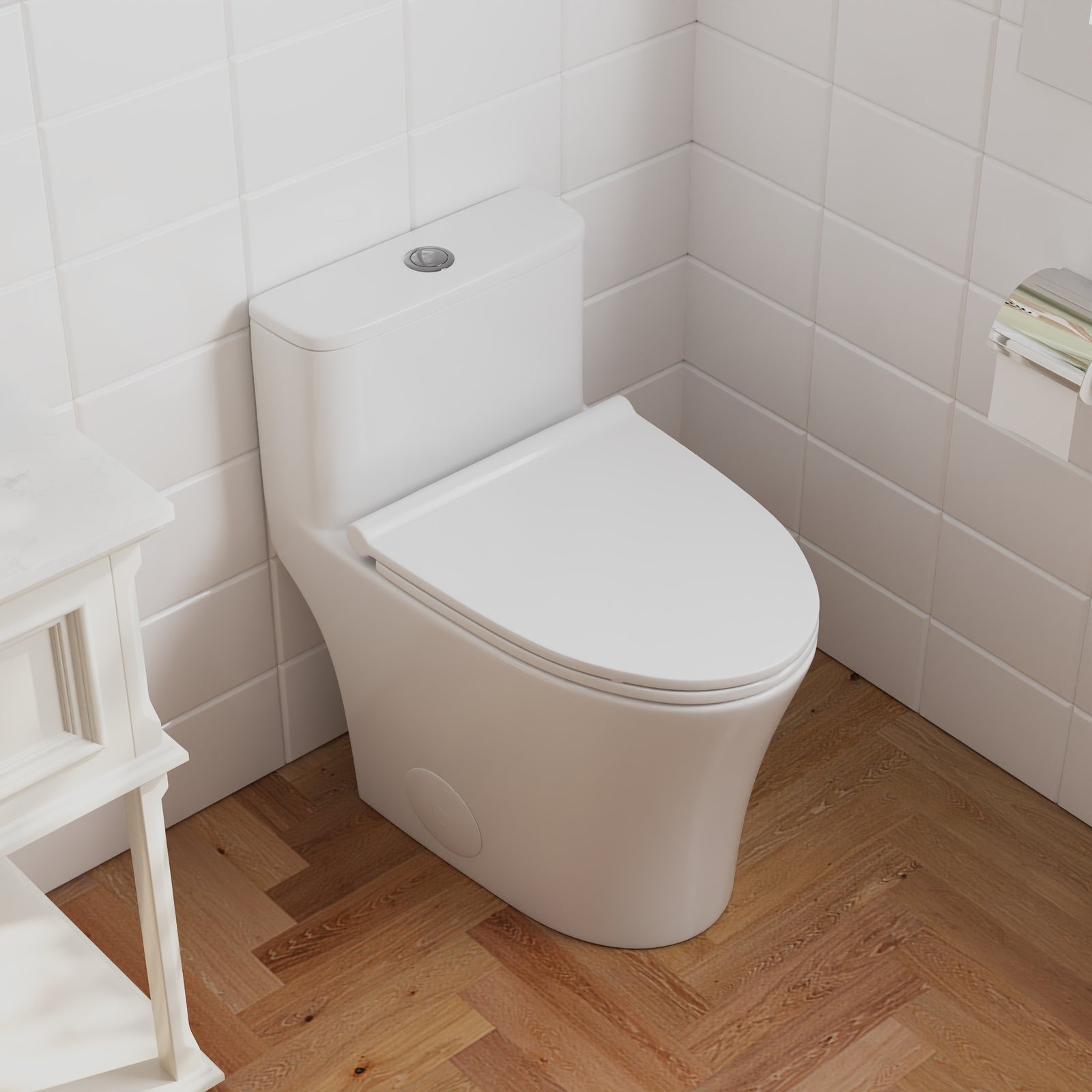 - Modern, compact one-piece design. Perfectly suitable for your bathroom;Nice glazed surface inhibits the growth of stain and odor-causing bacteria, mold, and mildew on the surface;