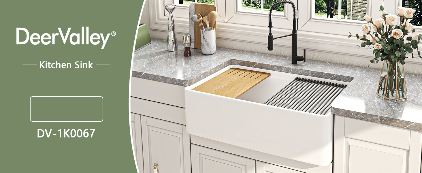 Stainless steel is the most durable and affordable; fireclay/ceramic is elegant and stain-resistant; granite composite is quiet and modern-looking.