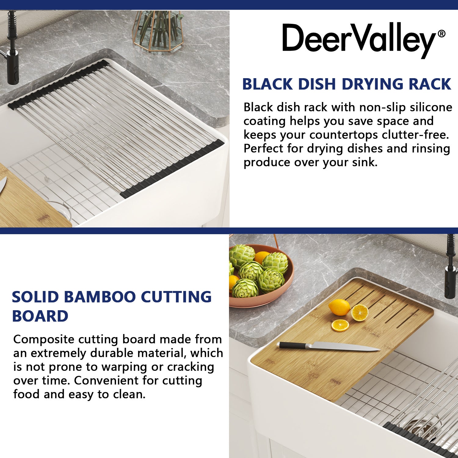 33"L X 20"W / 24"L X 20"W Rectangular Workstation Farmhouse Kitchen Sink, Smooth Surface