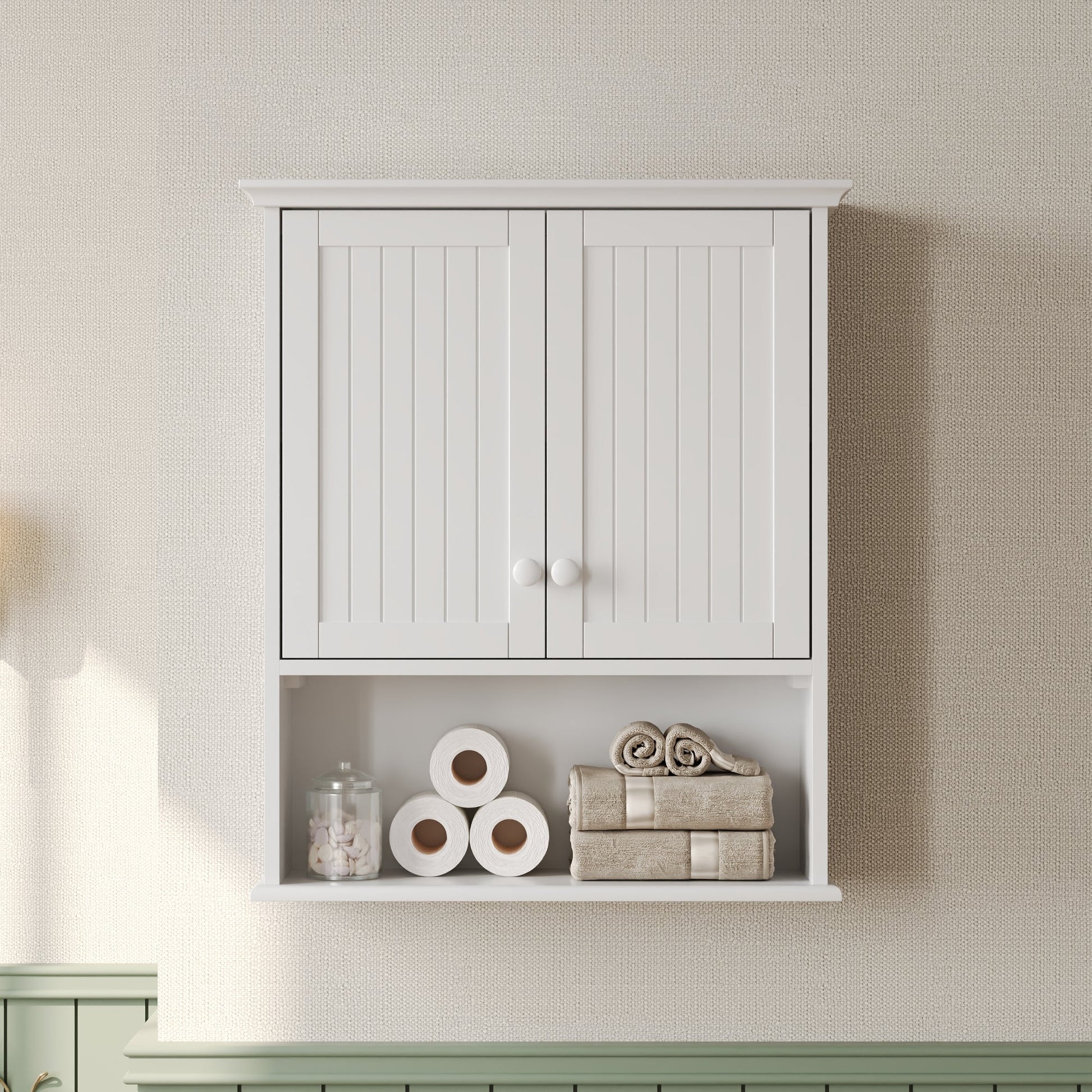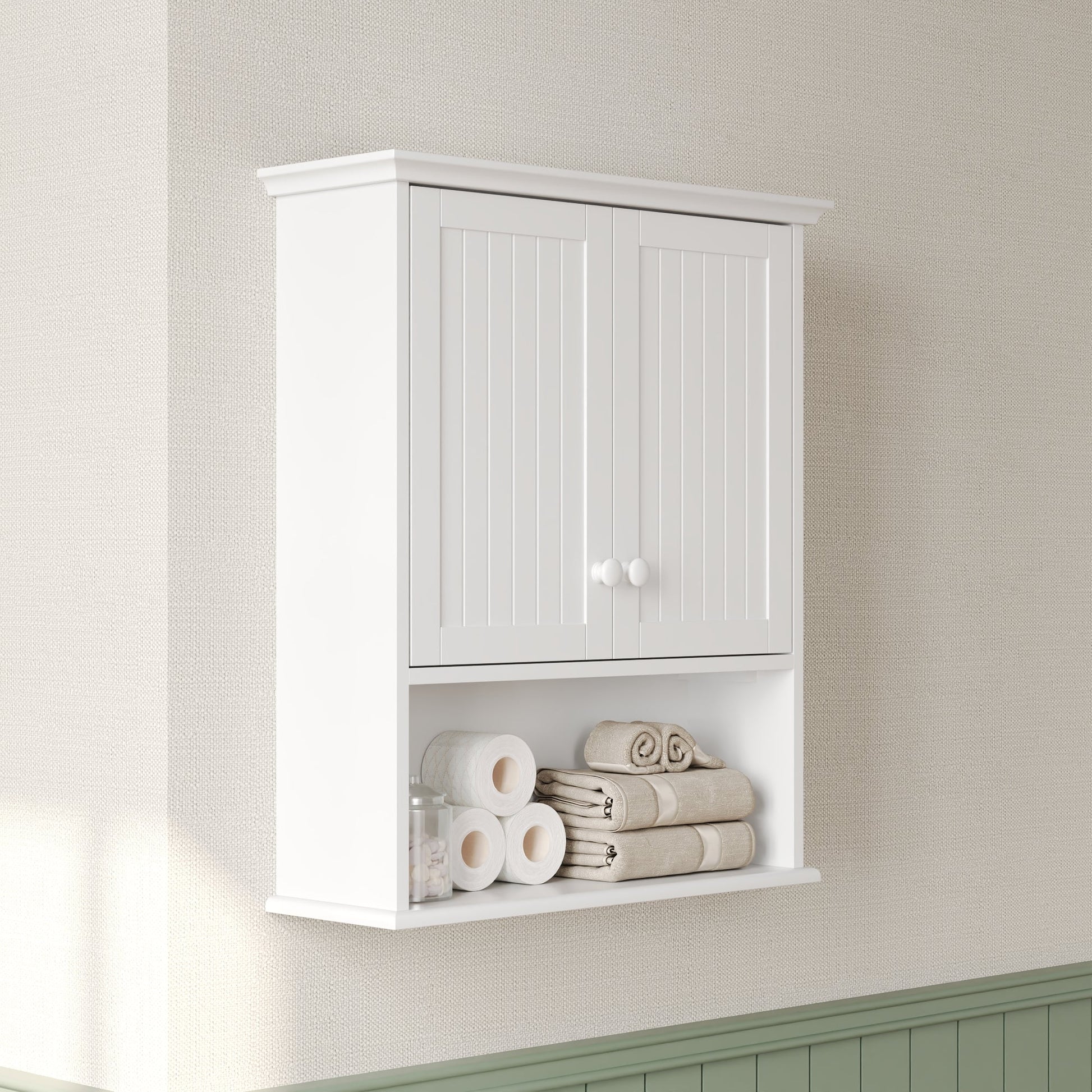 DeerValley Two-door Bathroom Cabinet, Wooden Wall Mounted Medicine Cabinet for Bathroom, White