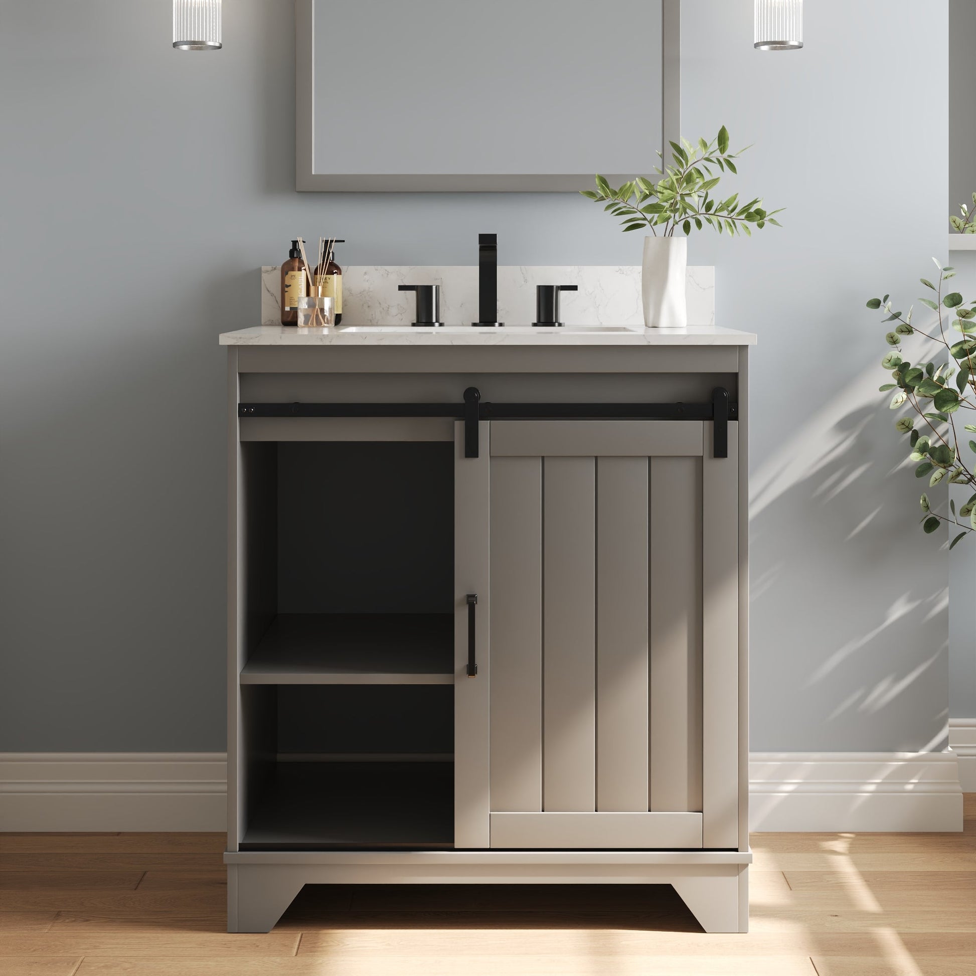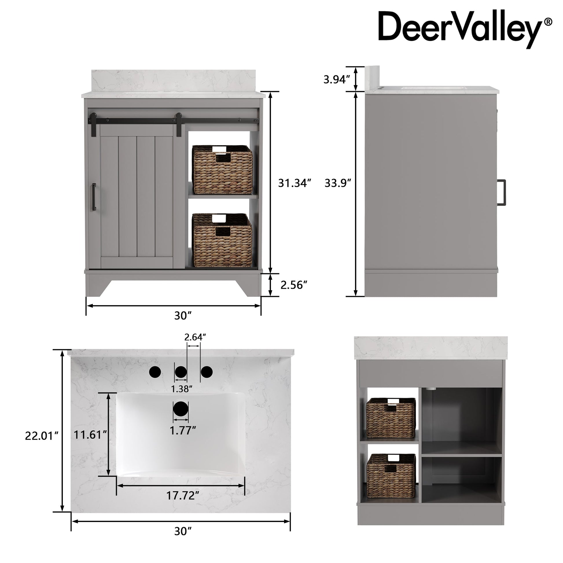 - Premium Construction: The bathroom vanity is designed with a single door to slide easily. It is mainly made of high quality MDF and boxwood. Its integrated ceramic sink and countertop design is both functional and stylish. Dimensions: 30"Lx22.01"Wx33.90"H, perfect for any bathroom.