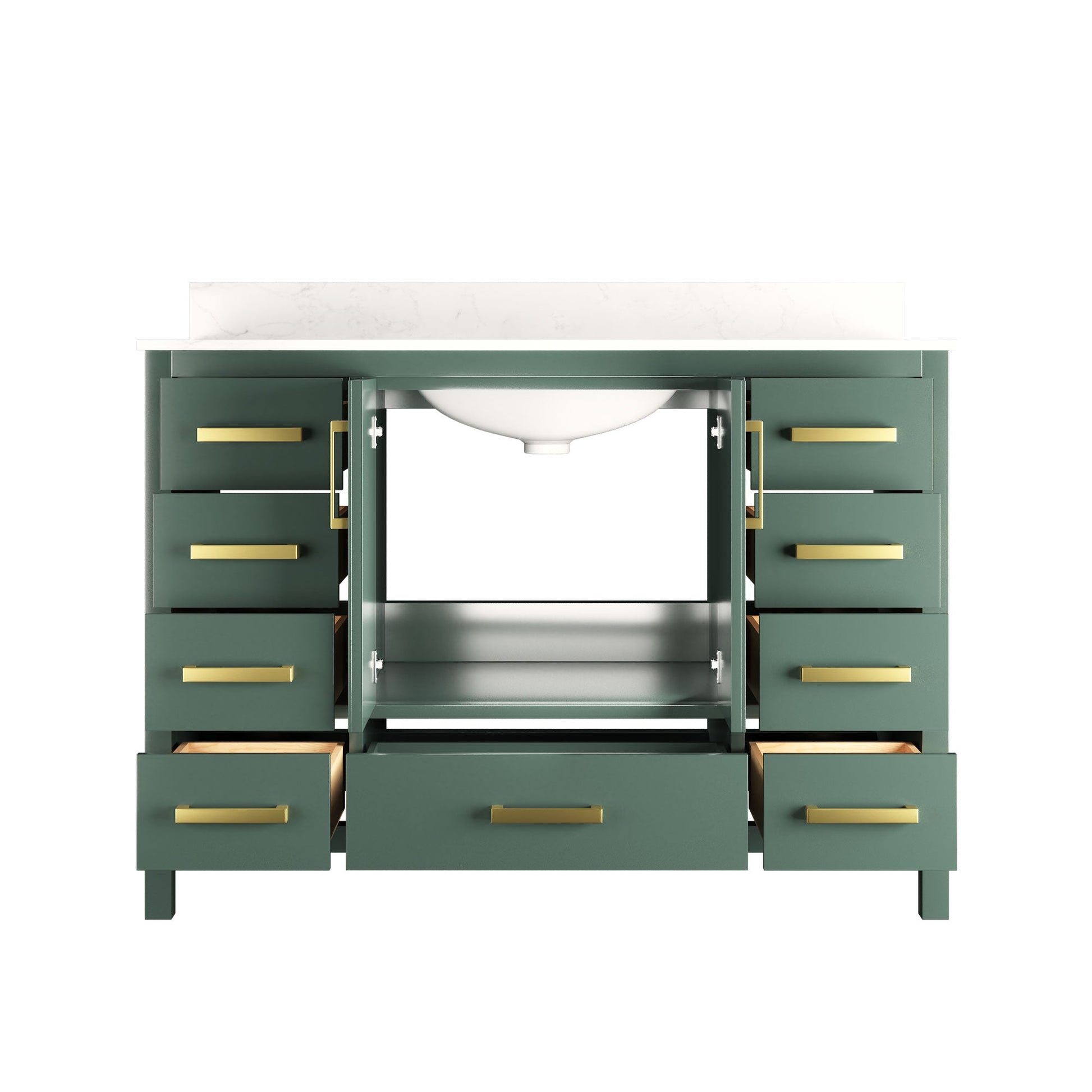 - No Assembly Required: Our bathroom vanities come pre-assembled, saving you the time and effort of assembling them yourself and avoiding the problem of missing parts. Drawers are removable for easy cleaning and organization.