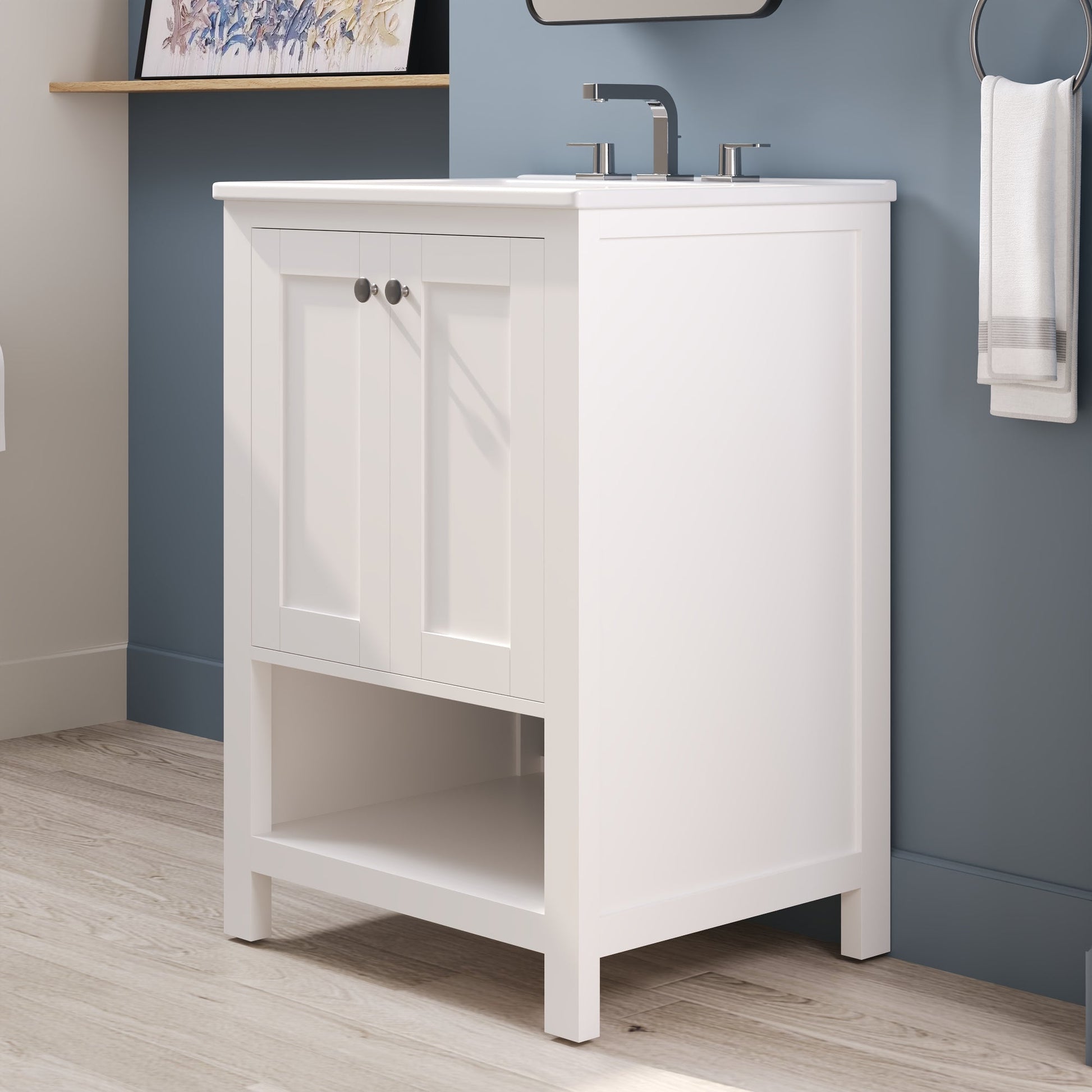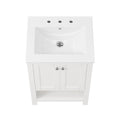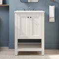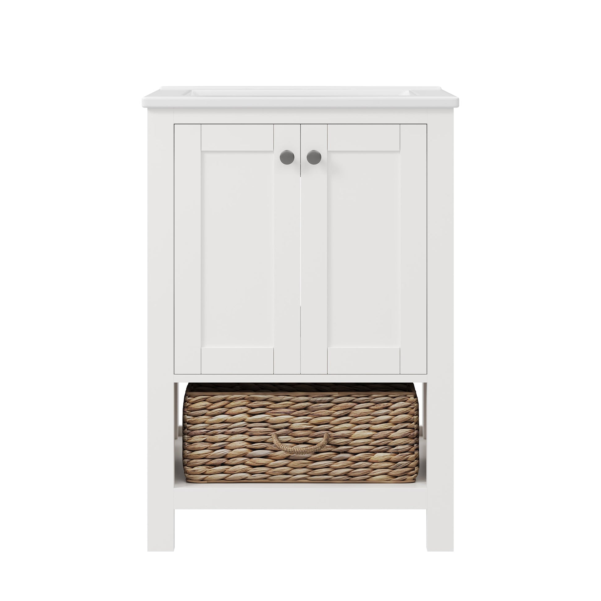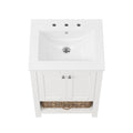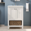 24" Pre-assembled Bathroom Vanity with Sink and Woven Storage Basket, 24 Inch White Vanity for Bathroom with Pre-drilled Holes, White.