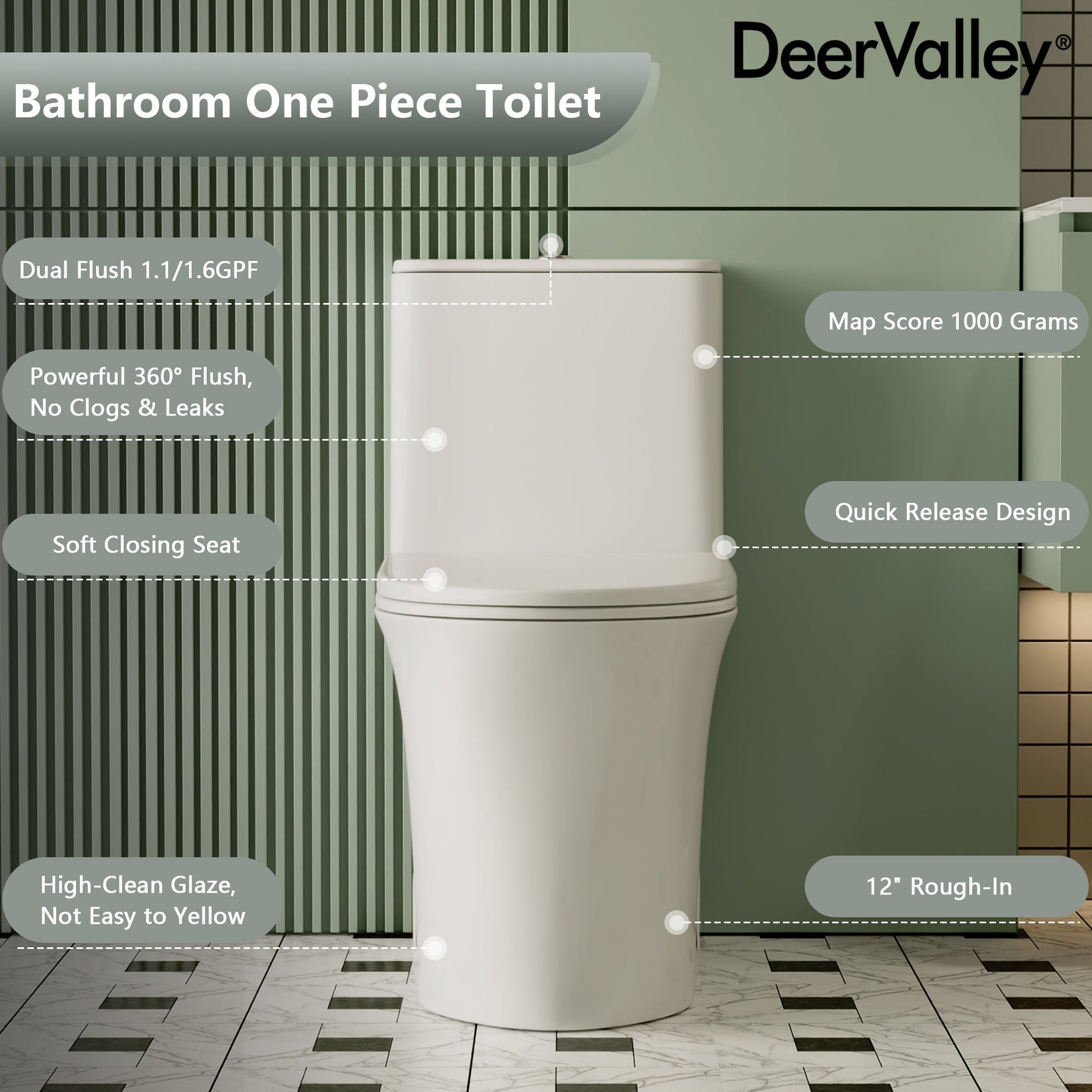 One Piece Toilet for Bathroom, Dual Flush 1.1/1.6 GPF Skirted Toilets, Soft Close seat
