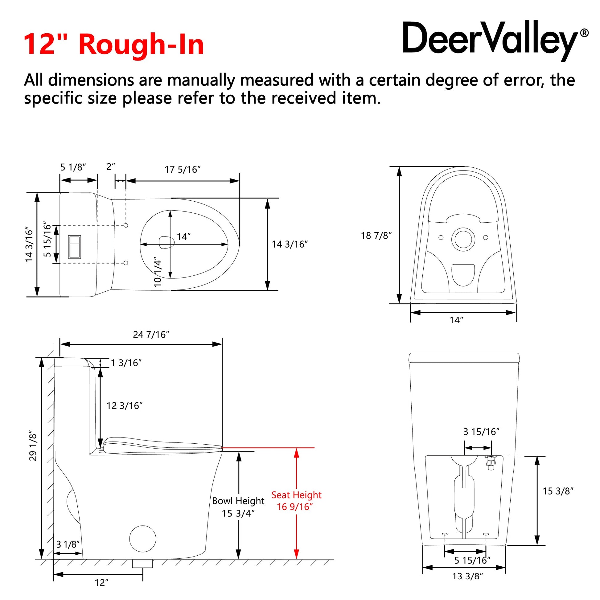 COMFORTABLE SEAT HEIGHTWith a seat height of 16 9/16"", this DeerValley modern toilet offers a comfortable sitting position that makes getting on and off easier—especially ideal for adults, the elderly, and those with limited mobility.