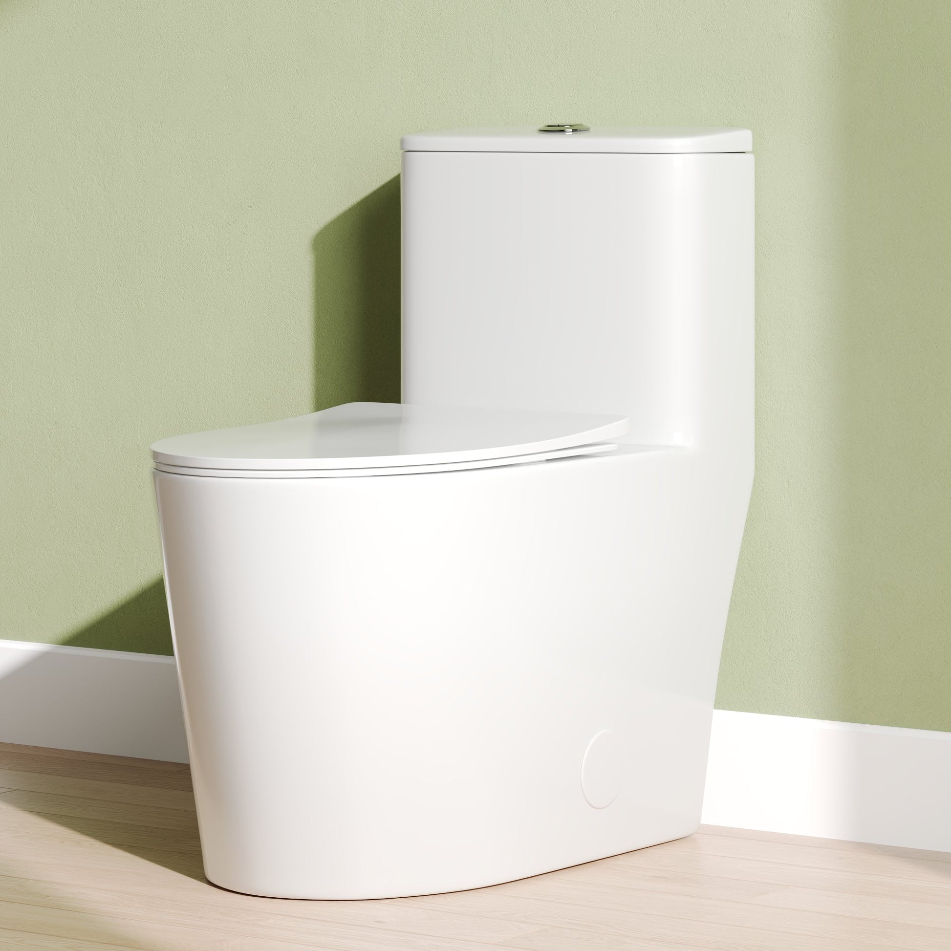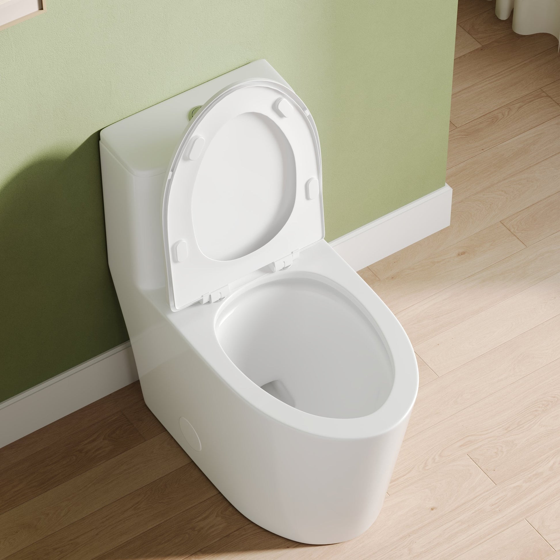 DeerValley Elongated One-Piece Toilet, 1.1/1.6 GPF Dual Flush, White Modern Skirted Toilet with Soft-Close Seat (Seat Included)