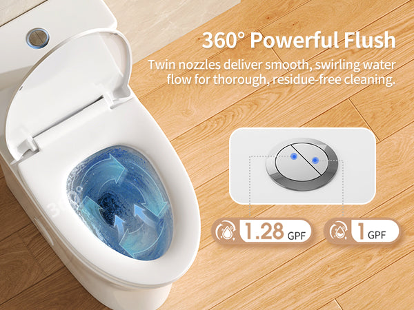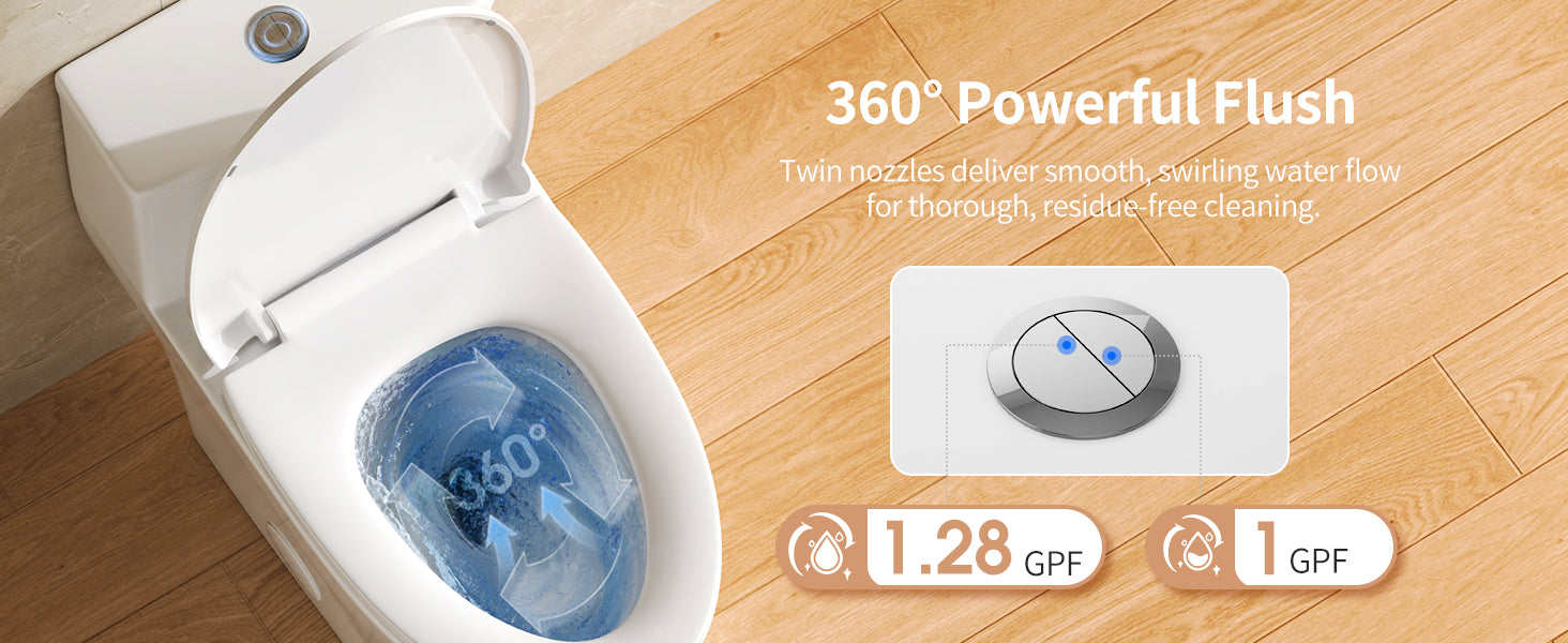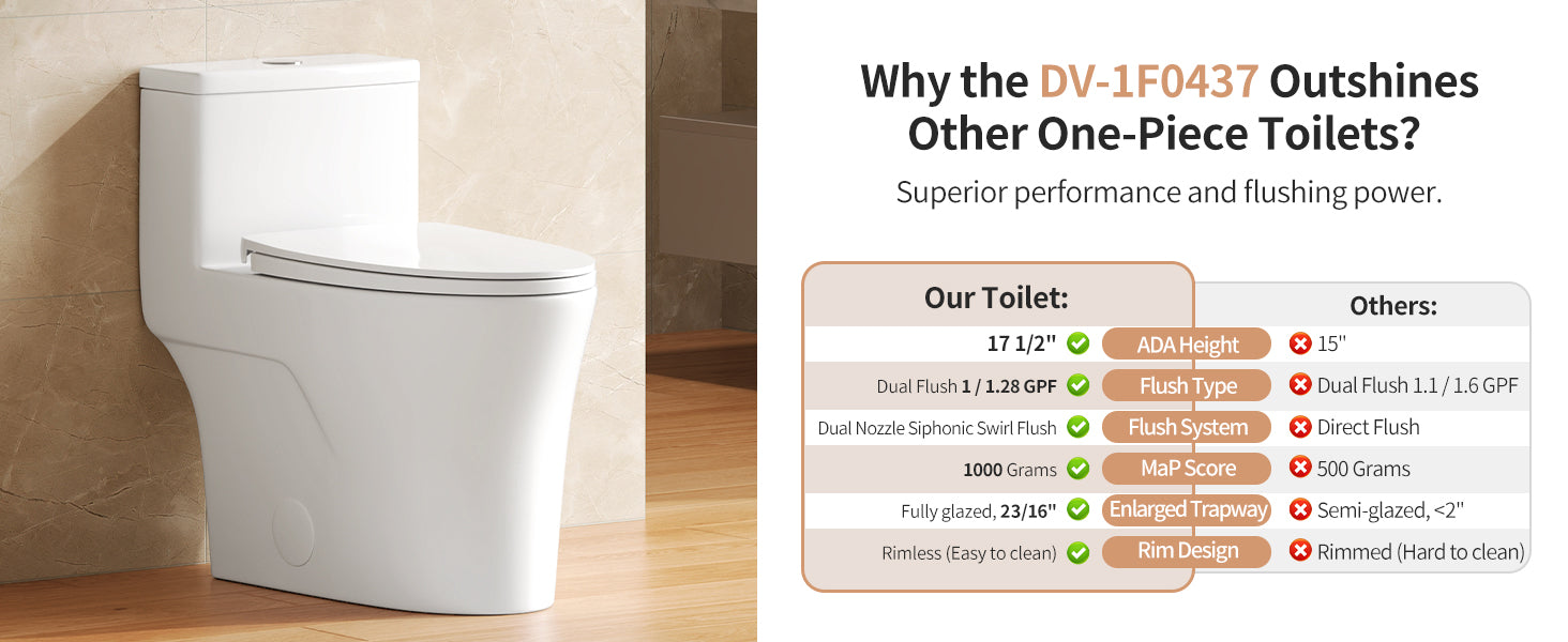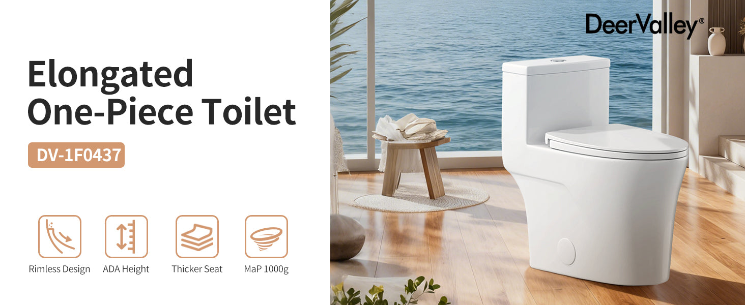 DeerValley One Piece Elongated Toilet, 1/1.28 GPF Dual Flush Rimless Bowl White Toilet with ADA Comfort Seat Height (Seat Included),DV-1F0437