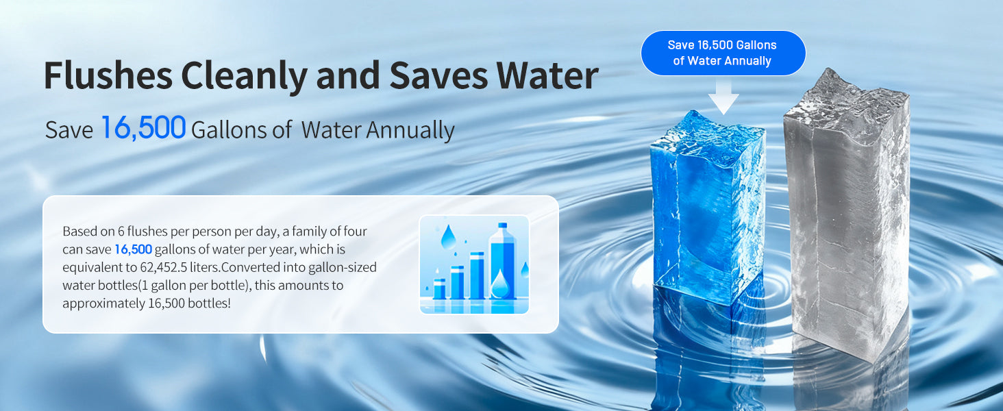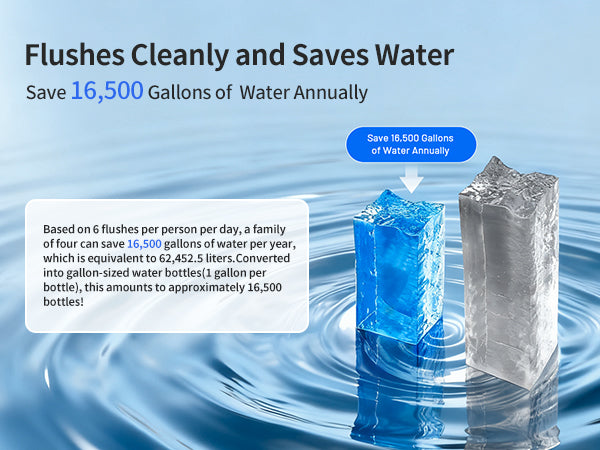 Modern toilets typically use 1.6 gallons (6 liters) or less per flush, saving thousands of gallons annually.