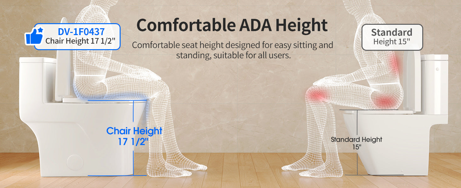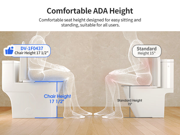 Standard: seat height ≈15″–16″, suitable for most people