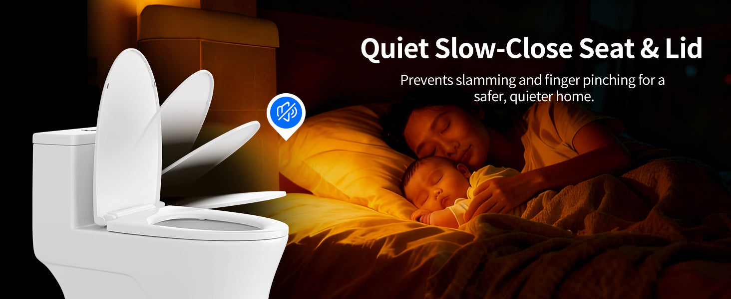 Soft-close gently lowers the lid to prevent slamming. Quick-release allows one-click removal for easy, thorough cleaning.