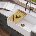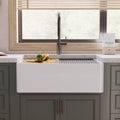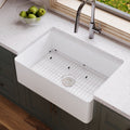 30"x 20" Farmhouse Sink Fireclay Apron Front Single Bowl Deep Drop In Kitchen Sink Undermount Farm Sink with Bottom Grid & Strainer - White Color / Black Color