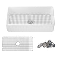 DeerValley Solstice Fireclay Farmhouse Sink, 35.5"L x 18"W Farmhouse Kitchen Sink White Large Single Bowl Farm Sink Reversible Apron Front with Sink Grid and Basket Strainer, DV-1K0377