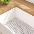 STRONG AND DURABLE: This white kitchen sink is made of high quality fireclay fired at 2200°F for extreme strength and durability, scratch-repellent, sound-absorbent, and the glaze does not yellow easily for long-lasting beauty and reliable performance.