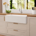 REVERSIBLE APRON DESIGN: This apron kitchen sink supports flexible and reversible installation, you can choose flat or fluted surface as the front panel according to your kitchen style.