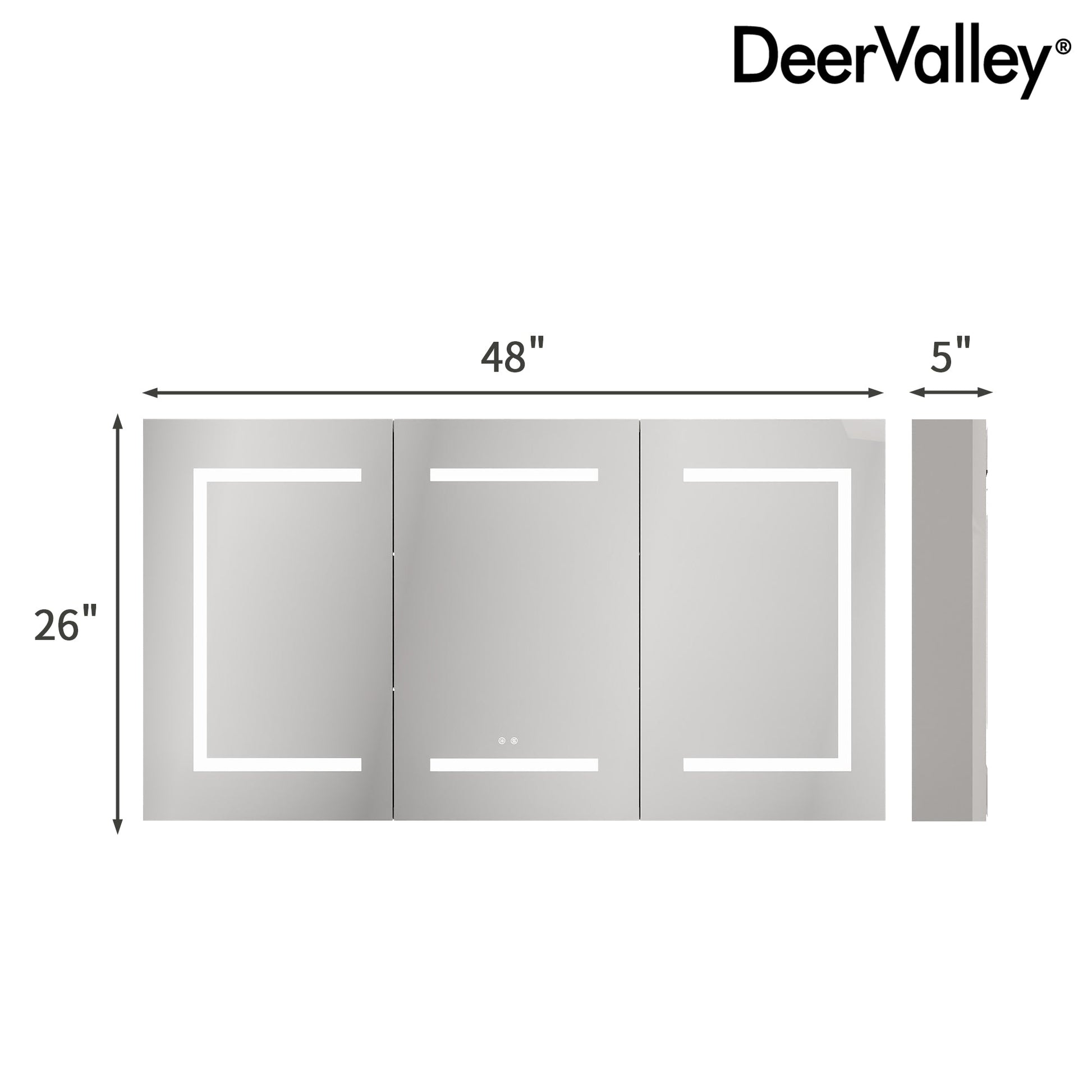 DeerValley 48" Smart LED Mirror Cabinet with Tri-Color Lighting, Stepless Dimming, and Defogger-DV-1MC0380