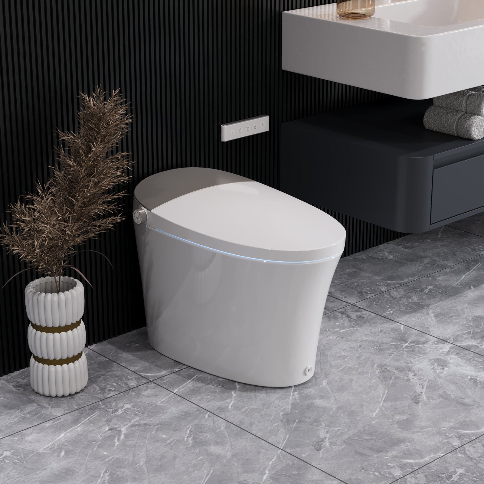 Experience ultimate comfort and hygiene with our intelligent bidet. Crafted with nano-glazed ceramic, it features a U-shaped bowl for optimal fit, seat sensing technology, and adjustable water pressure. Enjoy constant temperature heating, warm air drying, and customizable settings for water, seat, and airflow. Quiet operation and a gentle night light complete this modern bathroom essential. Elevate your hygiene routine effortlessly.