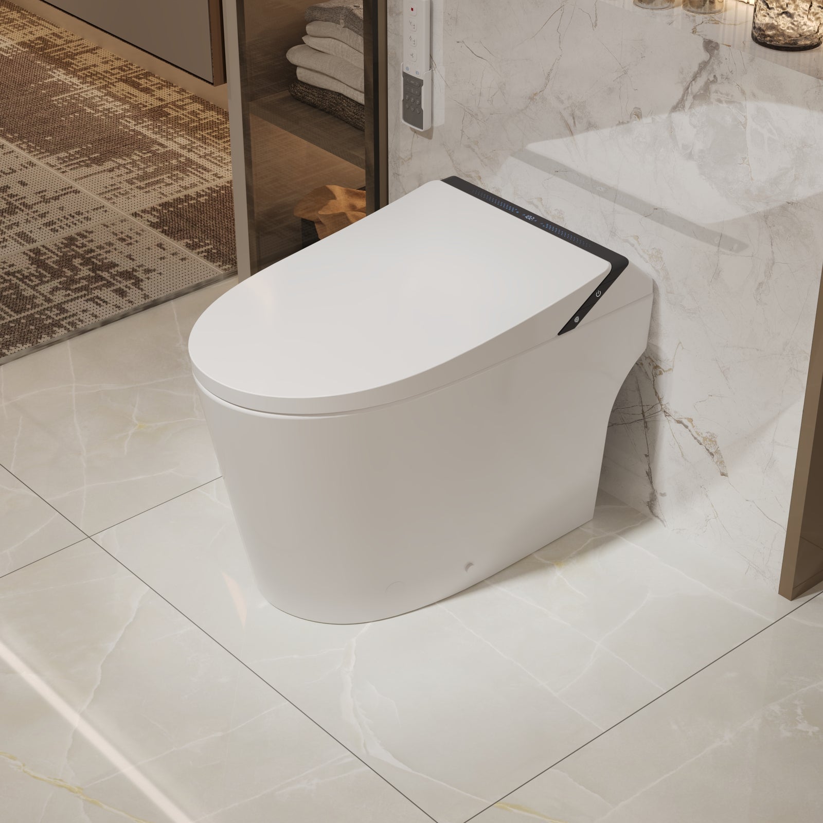 Smart Bidet Toilet with Auto Flush & Foam Shield Technology Modern Tankless Smart Toilet with Bidet, Warm Air Dryer, Heated Seat & Night Light (Remote Included) - DV-1S0289 / DV-1S0289-V3
