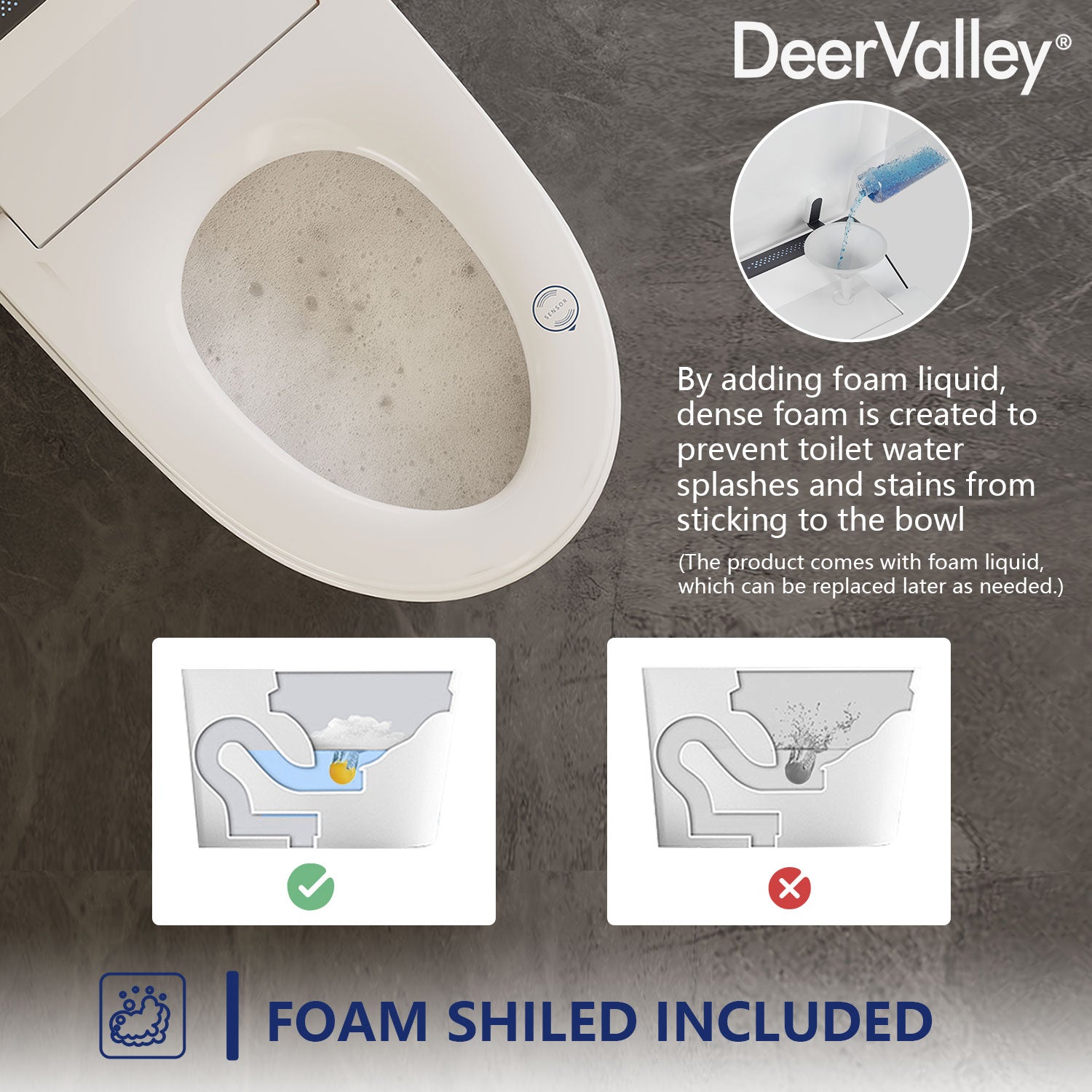 Upgrade your bathroom experience with the DV-1S0289-V3, featuring Foam Shield Technology that creates a uniform foam layer on the water surface to prevent splashing, reduce odors, and keep the toilet bowl clean. The Bubble Wash Function enhances cleaning power by combining air and water for a gentler yet more effective wash. Designed with ADA-compliant seat height, this toilet offers greater accessibility and comfort for all users. With zero water pressure limitations, it operates smoothly even in low-pressure environments. Enjoy five adjustable levels of seat heating, water temperature, and warm air drying for a fully personalized experience. Smart features such as auto flushing, auto open/close lid, and foot sensor operation provide effortless hands-free convenience. Additional comforts like a night light, pre-wetting, and automatic deodorization elevate hygiene and ambiance.