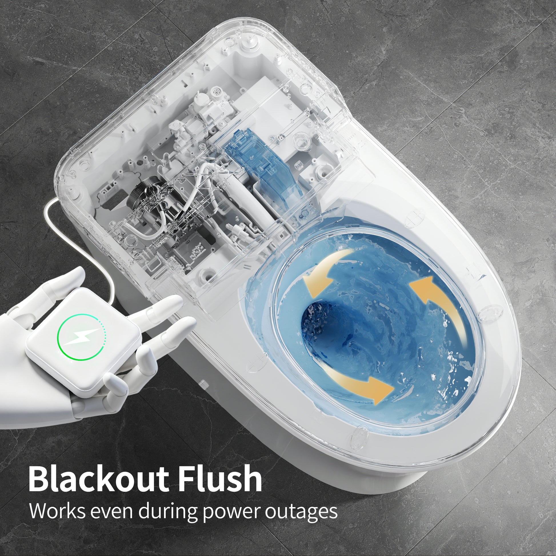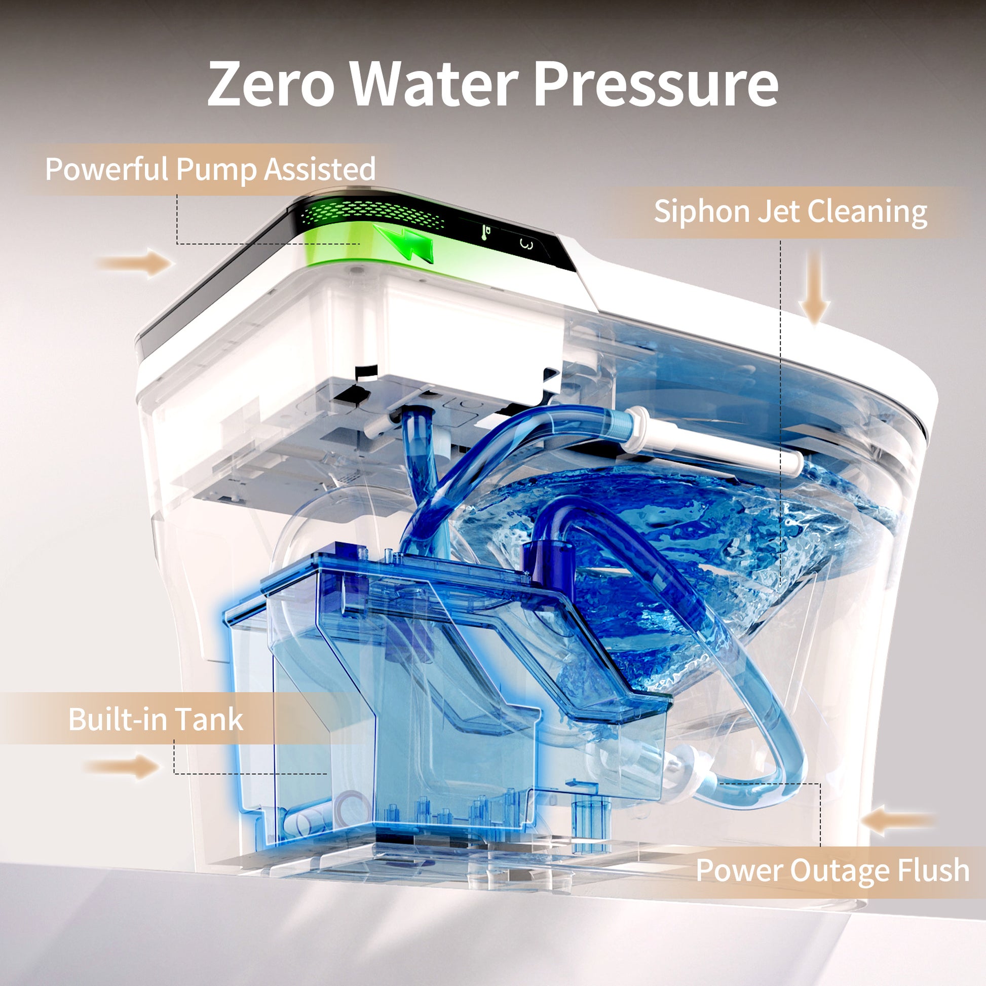 Built-In Water Tank & Pump - Equipped with a built-in water tank and pump, this white bidet toilet ensures stable water flow and strong cleaning power even in low or zero water pressure environments, making it ideal for all households.