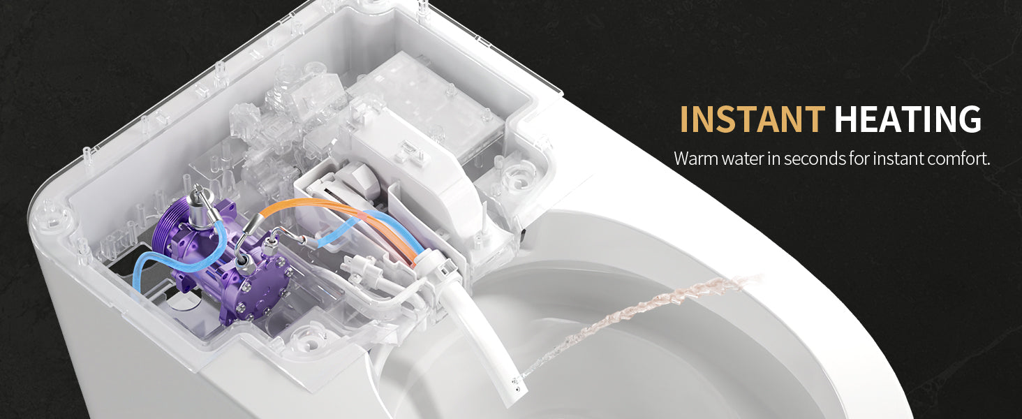 This smart toilet has a built-in heating system, so it heats the water by itself. You do not need to connect it to an external hot water source. The water can be adjusted to warm or cold according to your preference.