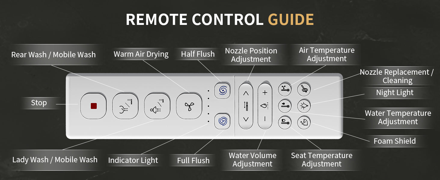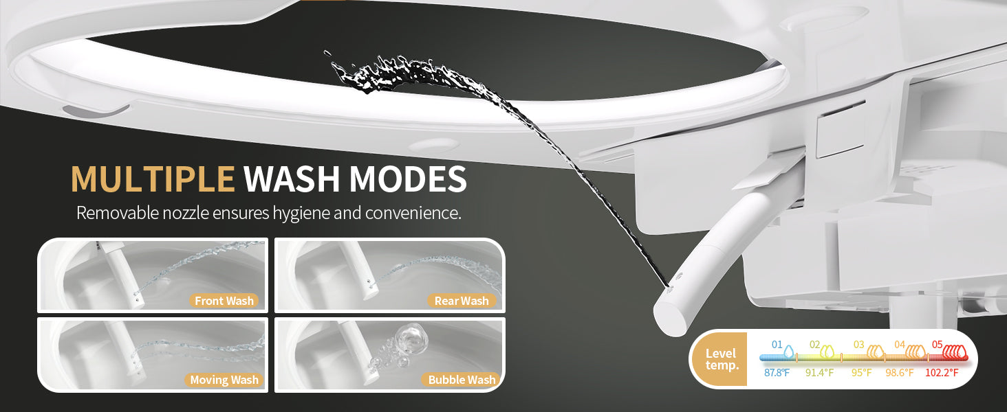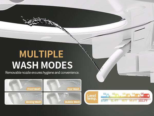 The nozzle is equipped with an automatic self-cleaning system that rinses itself before and after each use to ensure optimal hygiene. For additional cleaning, you can extend the nozzle using the remote control and gently wipe it with a soft cloth.