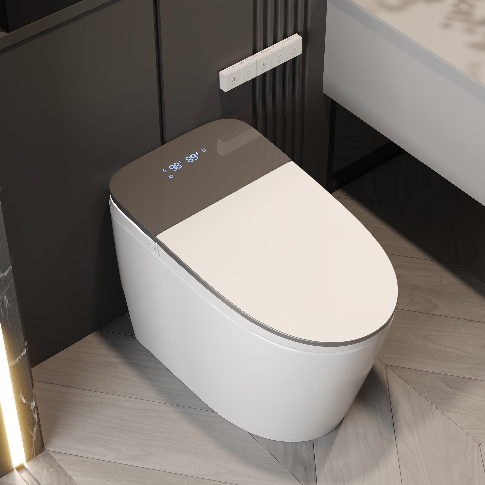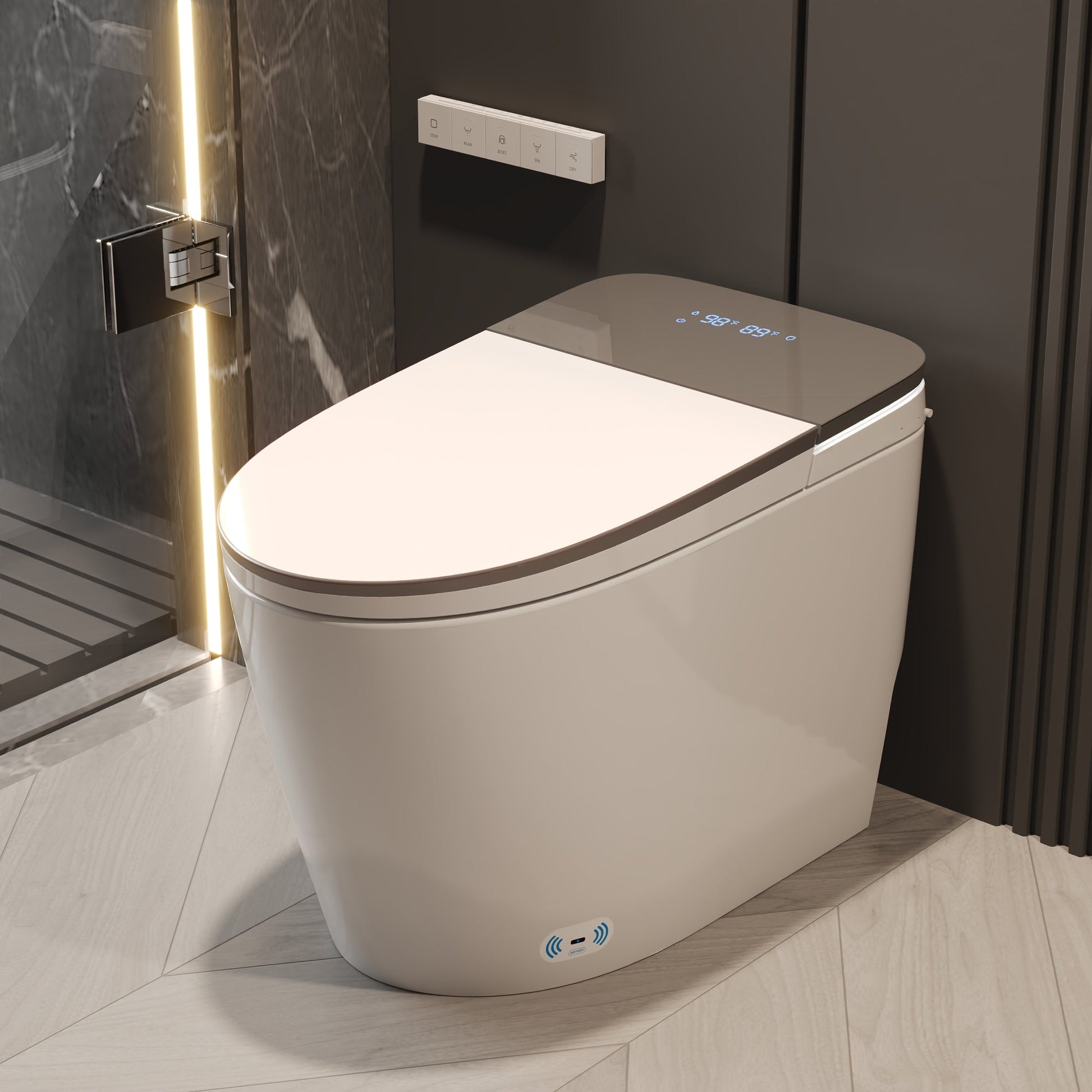 Advanced Smart Toilet with Voice Control, Programmable Spa Cleaning, Foam Shield, ADA Comfort Height, Heated Seat, Warm Dryer, and Zero Water Pressure Flush , Touchless Luxury Bidet Toilet for Modern Families