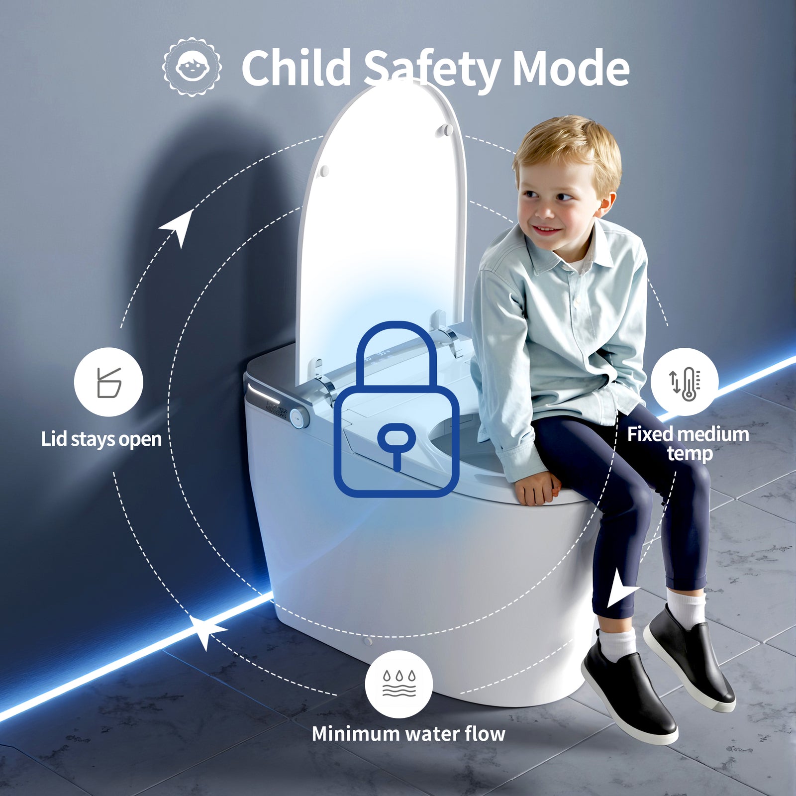 DeerValley DV-1S0371-V3 Smart Toilet with Foot Sensor Lid, UV Sterilization, Child Mode, ADA Height, Foam Shield, and 1000 MAP Flush - Programmable Water Spray & Warm Air Dryer for Elevated Comfort