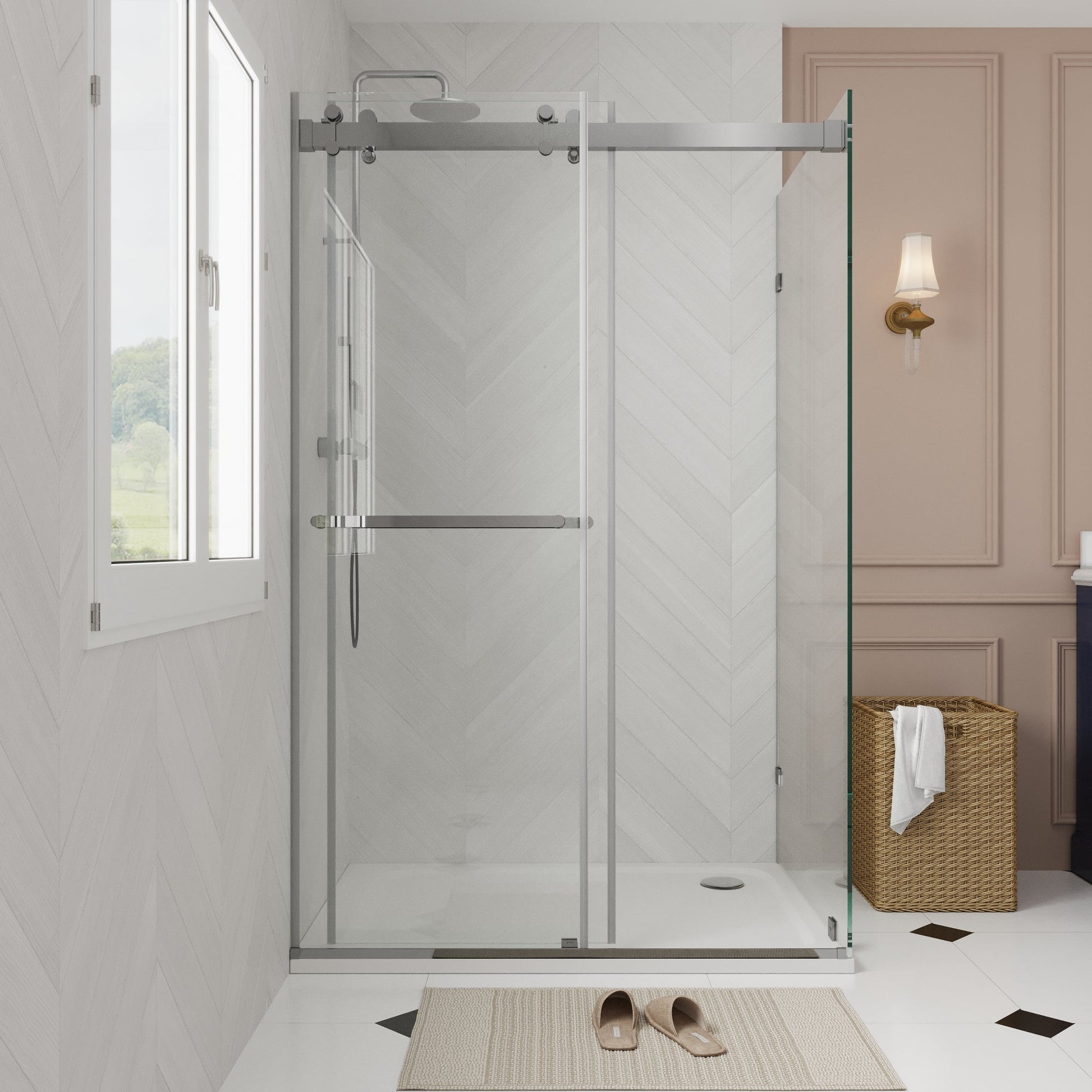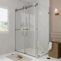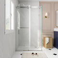 Sliding Frameless Shower Enclosure with 3/8" Clear Glass, Stainless Steel Accessories
