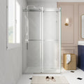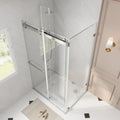 Transform your bathroom with our modern frameless sliding door shower enclosure. Crafted from stainless steel and featuring 0.39" tempered glass, durability is assured for years to come. The sleek design includes a sliding door that can be effortlessly installed to open left or right, offering a personalized touch to suit your space. Elevate your bathroom with this contemporary enclosure, combining style with functionality for a truly luxurious shower experience.
