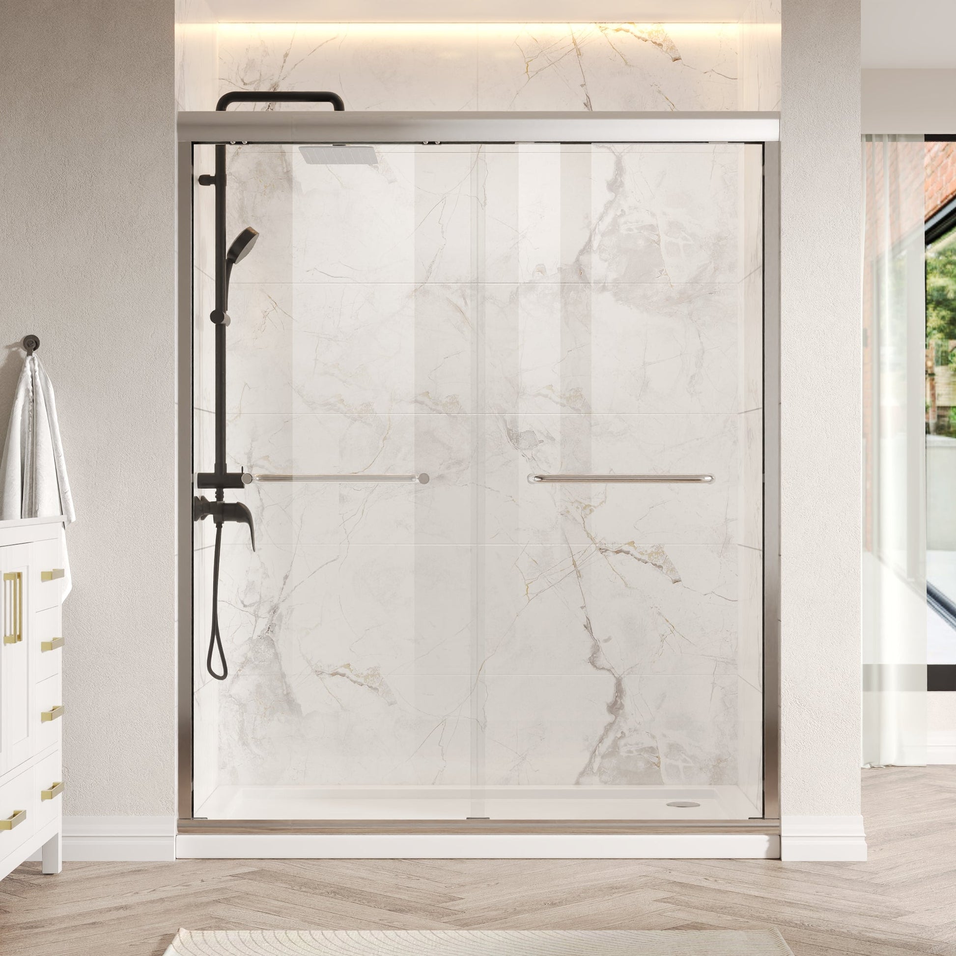 56 in. - 60 in. W x 76 in. H Semi-Frameless Sliding Shower Door,Silver Finish / Black Finish