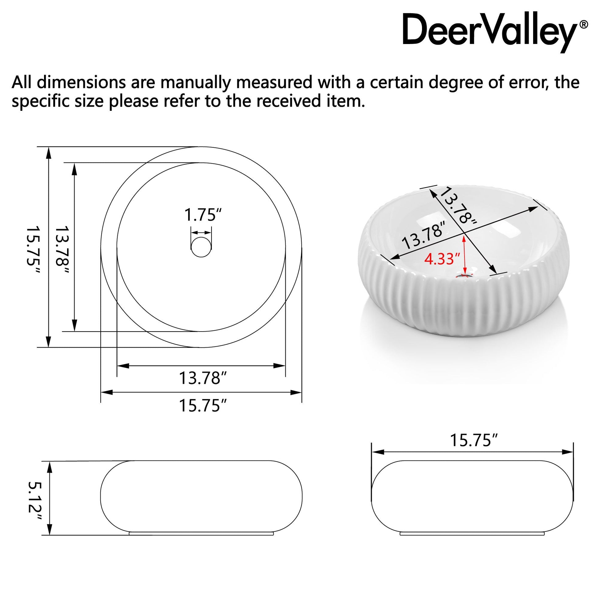 DeerValley is committed to providing customers with a variety of choices. Elegant vessel sinks in a variety of shapes and sizes can satisfy your personal preference and bathroom decor style at the same time. A smooth and non-porous surface makes DeerValley bathroom sinks stain-resistant and easy to clean. Simple yet versatile, DeerValley bathroom sinks fit in a variety of bathroom design styles including traditional, modern, transitional, and contemporary.