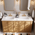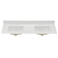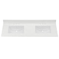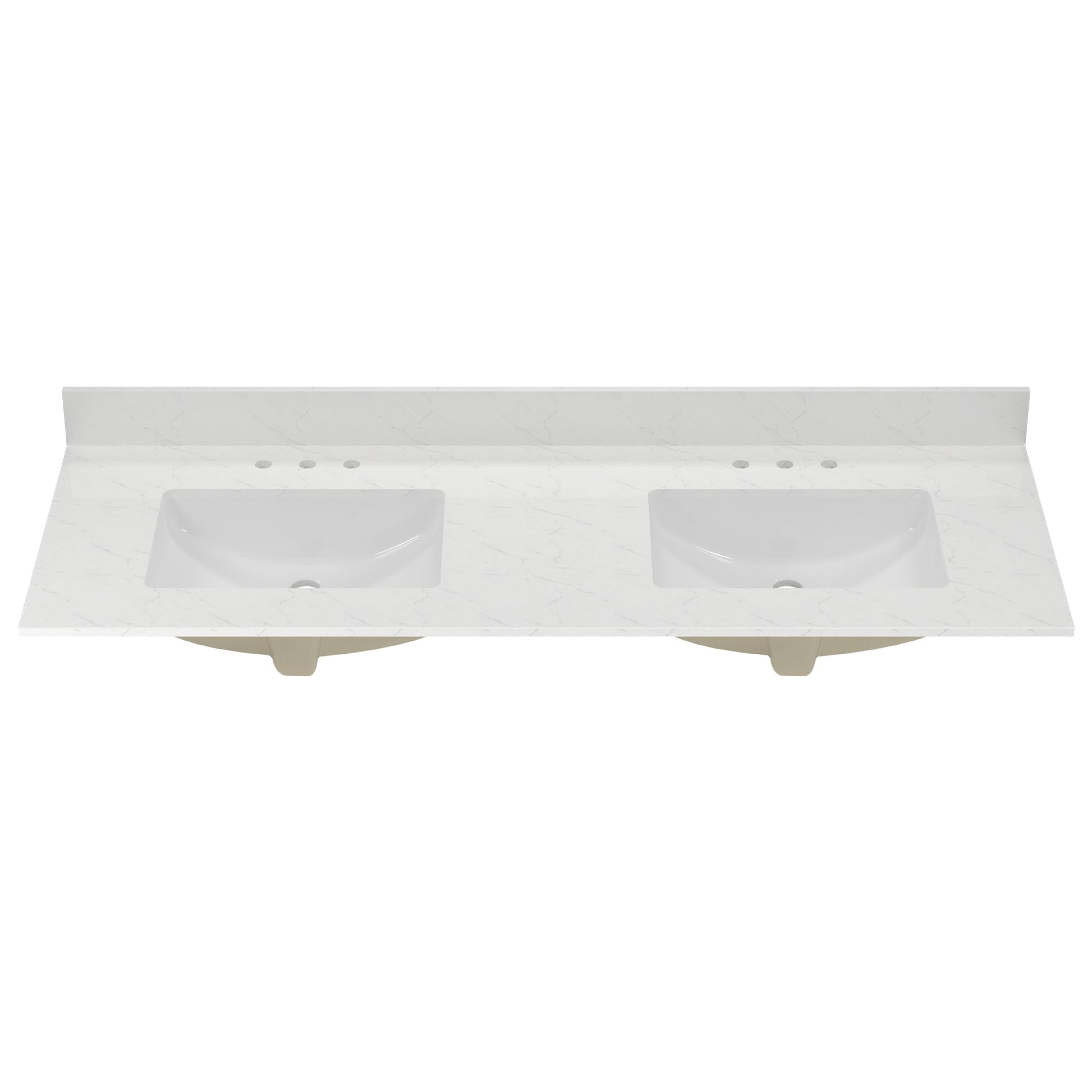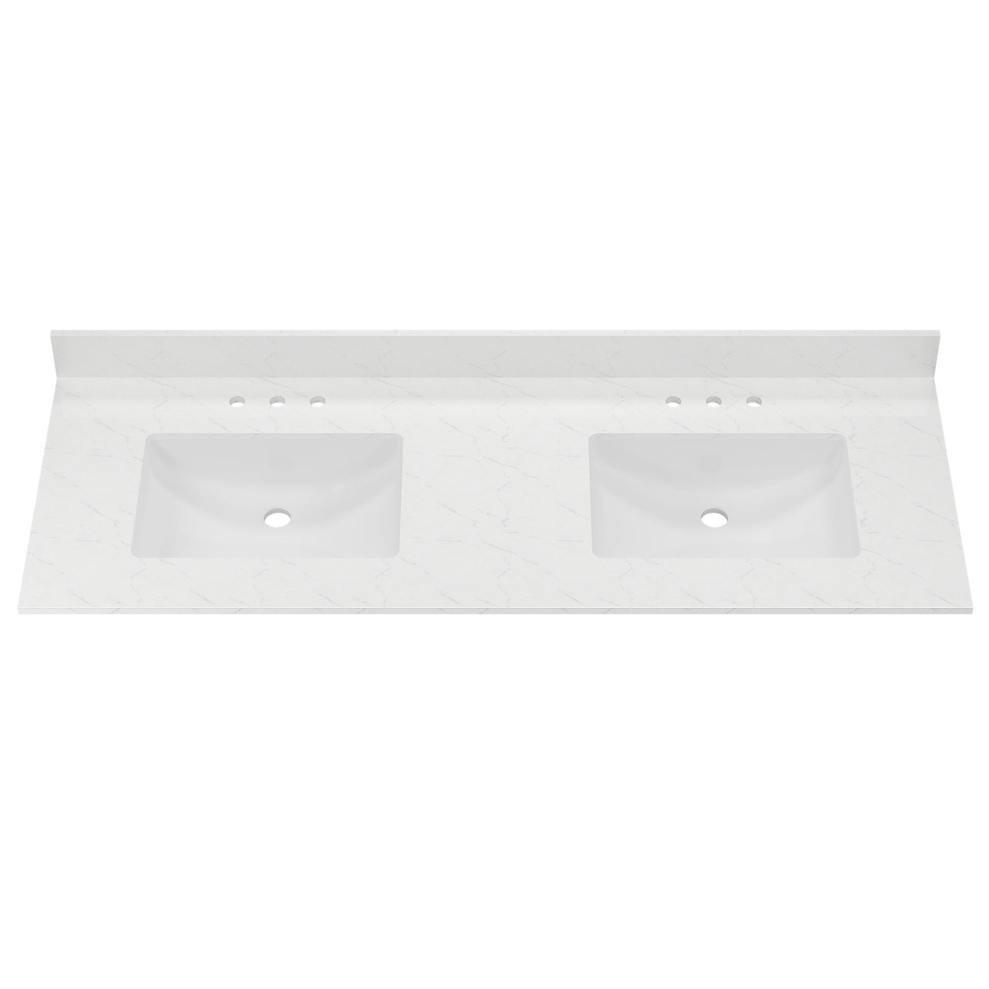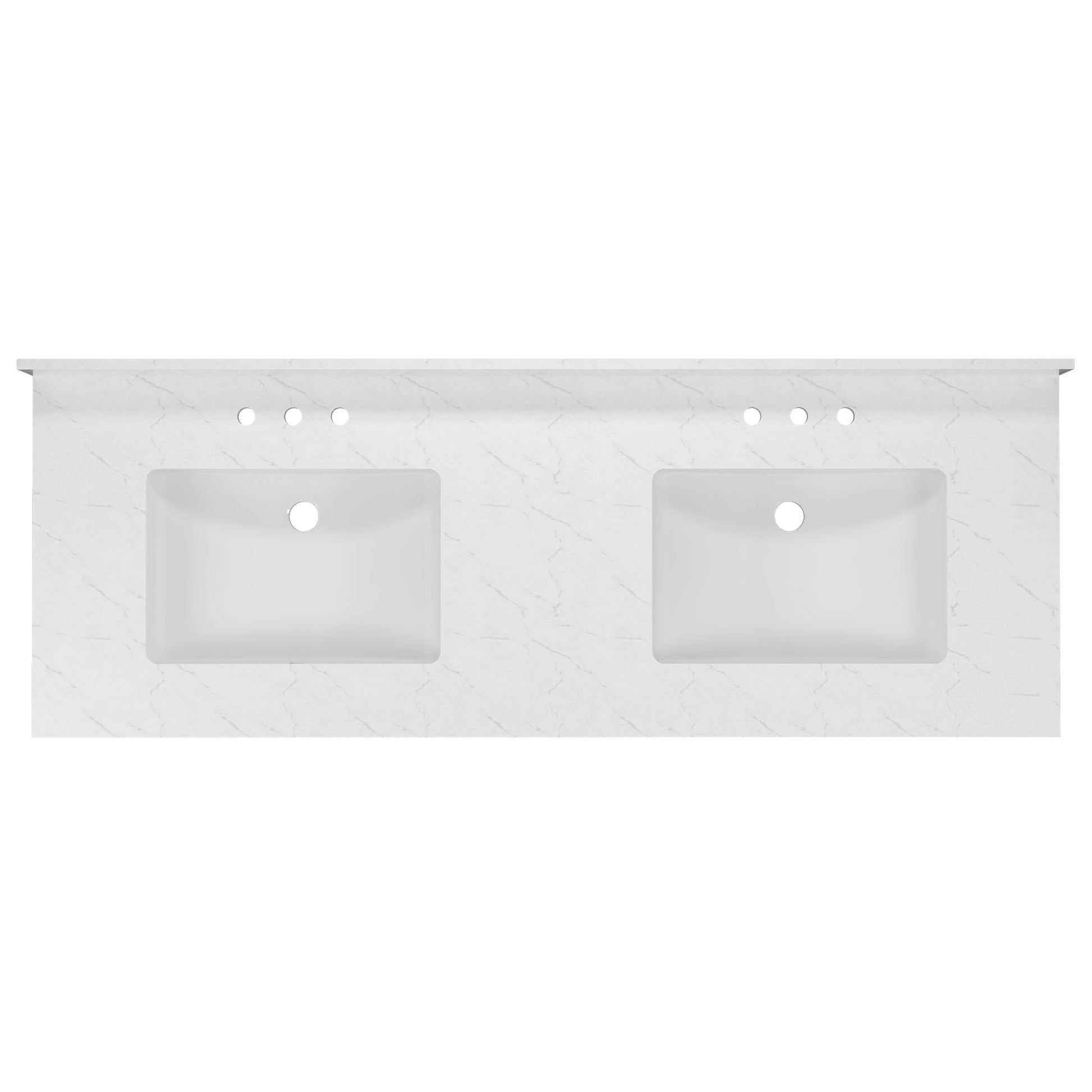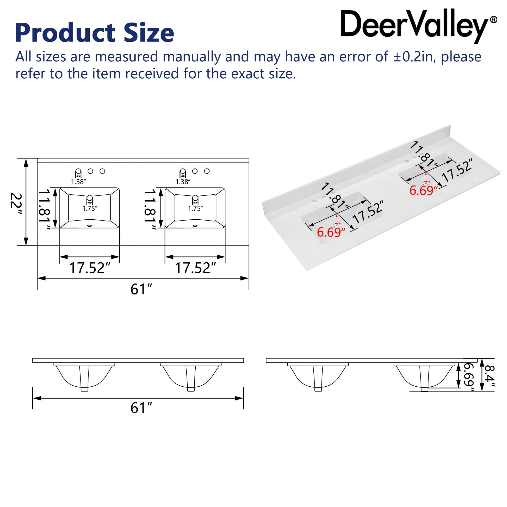 - Efficient design: With a backsplash and overflow holes, this vanity top provides great protection against water splashes and keeps your bathroom clean and dry. Enjoy functionality and beauty with this efficient design. Ample storage: The Deer Valley Bathroom's rectangular two-bowl sink provides a convenient space for storing personal toiletries, keeping essentials easily accessible at the edge of the sink.