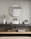 The round design offers a simple yet elegant aesthetic, fitting seamlessly into various modern bathroom styles while adding a unique decorative touch. -