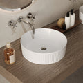 This 16" x 16" round ceramic vessel sink features a unique wavy texture design, creating a natural and dynamic visual effect. Its simple yet elegant shape perfectly complements modern bathroom styles. Made from high-quality ceramic material, it is highly durable and resistant to stains and scratches, ensuring long-lasting use. The round design adds an artistic touch to your bathroom and is easy to clean, making it an ideal choice for your bathroom decor.