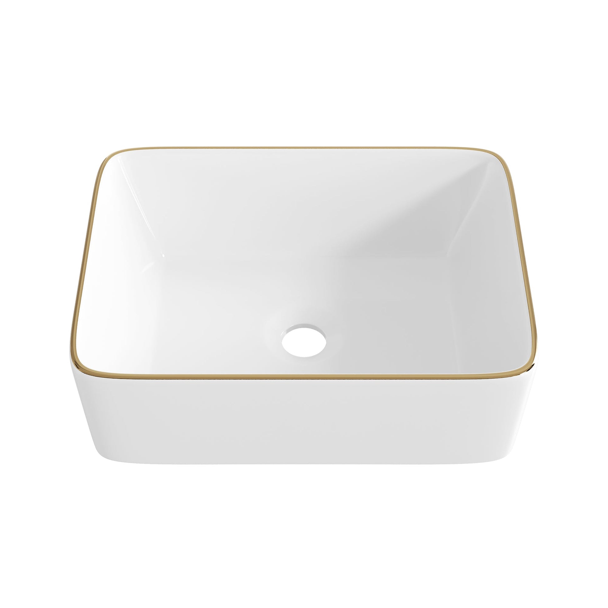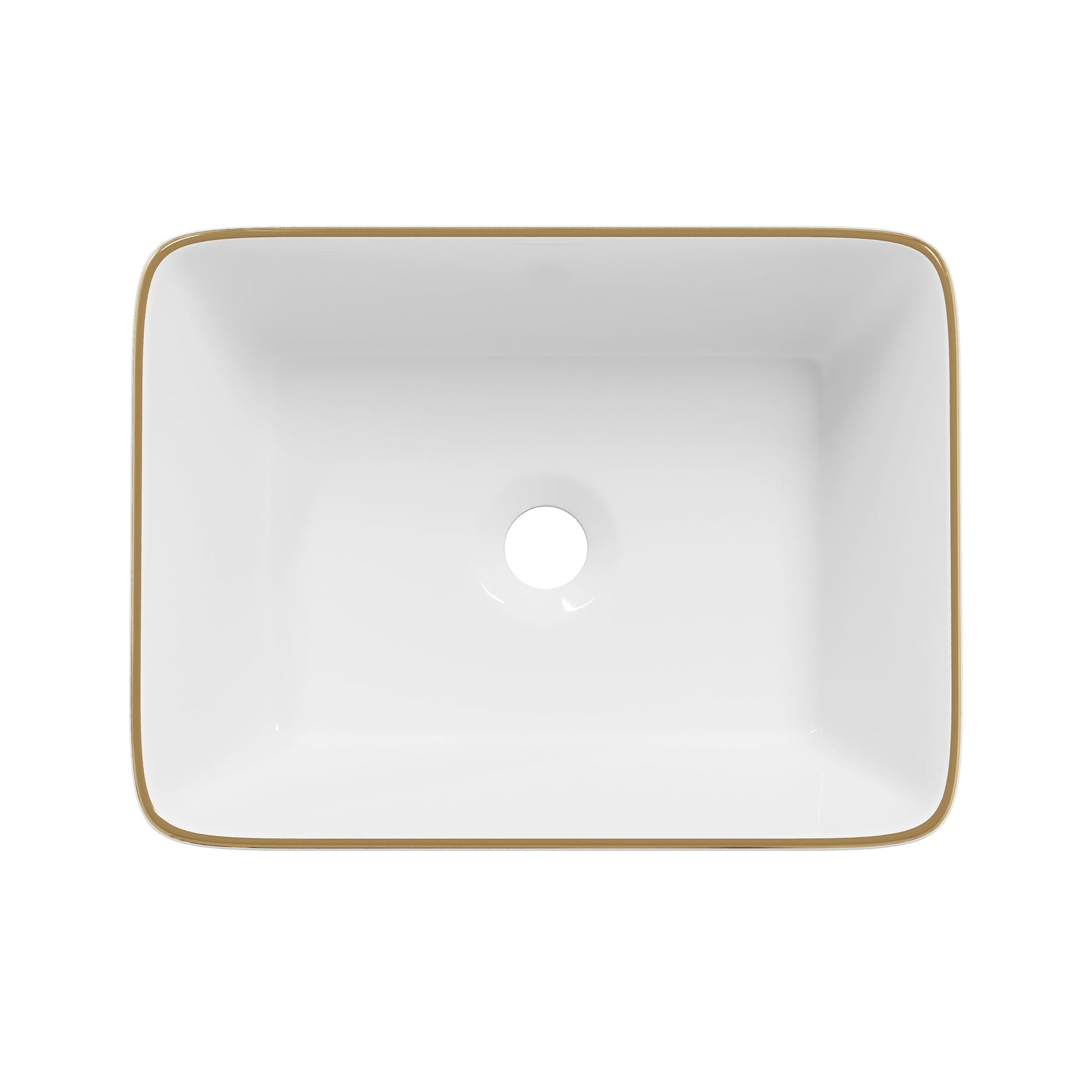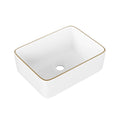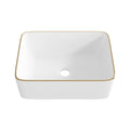 DeerValley Liberty 16"x12" Rectangular Vessel Sink with Gold Trim, White Ceramic Above Counter Bathroom Sink Bowl, DV-1V0366